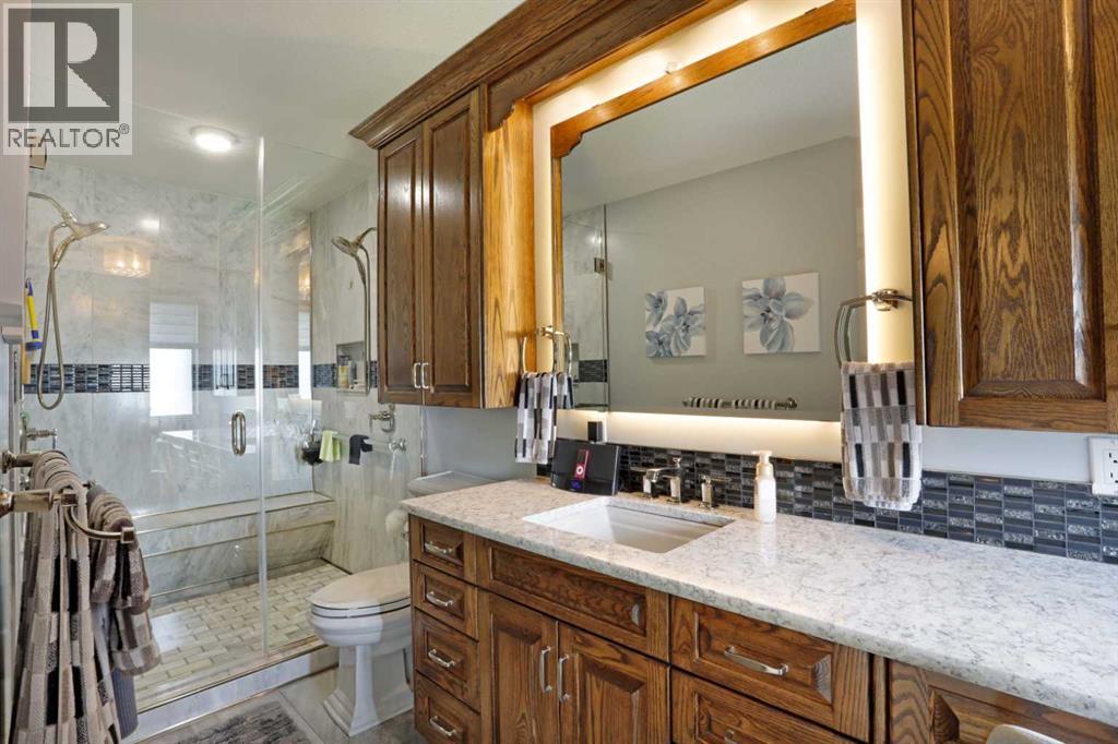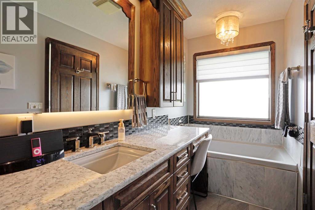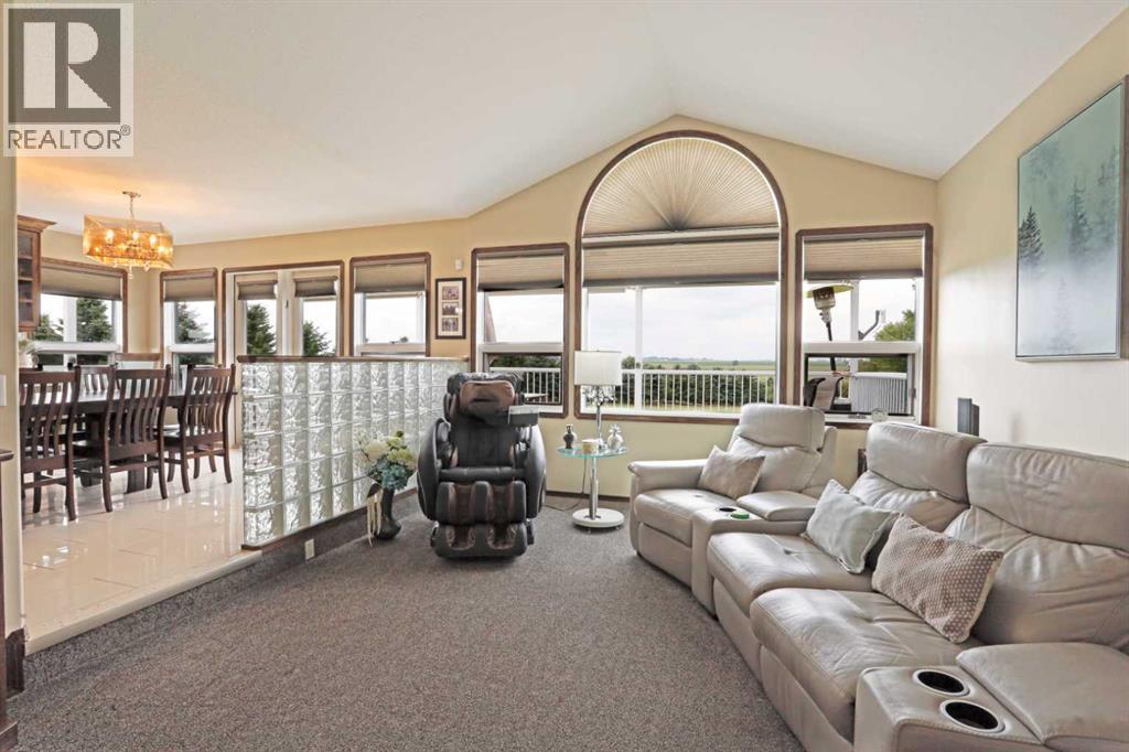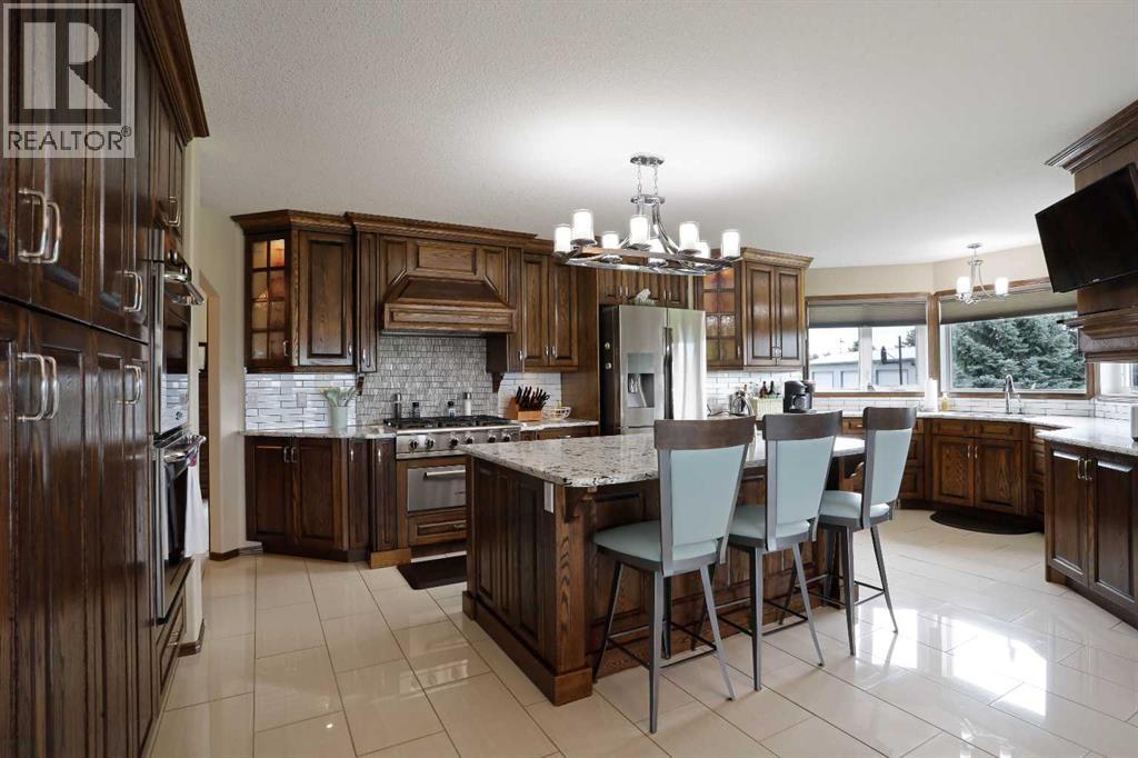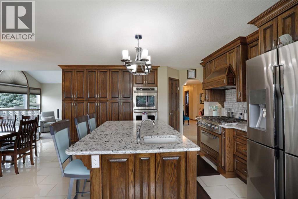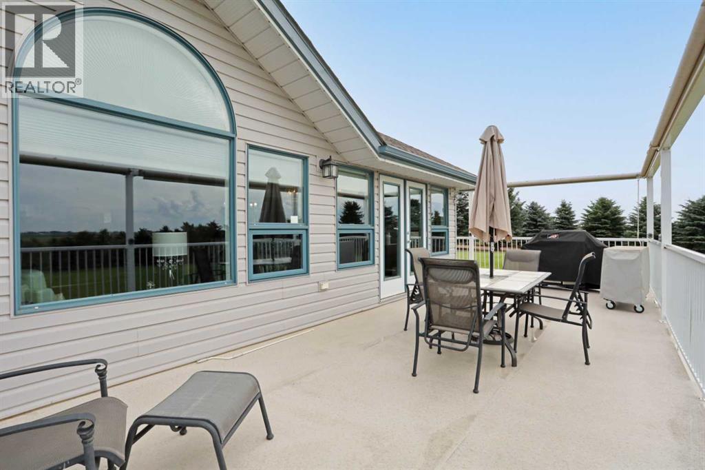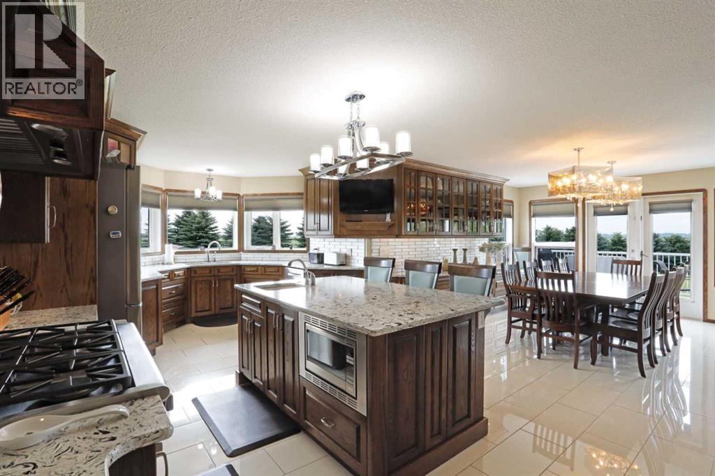 Acreage luxury in Newell County. This pristine acreage offers nearly 7 acres of beautifully maintained land and exceptional living space inside and out. The main floor features a spacious primary suite filled with natural light, complete with a 4-piece ensuite and a generous walk-in closet. A second bedroom includes a built-in Murphy bed, perfect for guests or flexible use, the main floor also has a large office ideal for working from home. The main level contains a second 4-piece bathroom, and the double attached garage includes a convenient 2-piece bathroom. The chef’s kitchen boasts high-end finishes and modern design. The well appointed dining area opens to a large deck that overlooks the peaceful backyard—perfect for entertaining or enjoying the serenity of the property. Downstairs, the fully finished walk-out basement includes a second full kitchen, three additional bedrooms, including one with its own 4-piece ensuite, and another full bathroom. Step out onto the covered patio and take in the expansive views of the acreage. Outbuildings include a large heated shop with a bathroom and hoist, ideal for projects or hobbies, and a detached triple car garage offering even more space for vehicles and storage. This property is loaded with high-end features designed for comfort, convenience, and peace of mind. The home boasts two garburators in the upstairs kitchen, set into durable Koehler cast iron sinks, with solid oak custom cabinetry, quartz countertops up and down, a built-in appliance pantry, and a dedicated food pantry. Multiple oak built-ins can be found throughout the home, adding both beauty and function. The mechanical systems are equally impressive, including a boiler system with in-floor heating in the basement and heated double car garage. Water is supplied by town water dripping into a cistern, complemented by EID irrigation water with an automatic sprinkler system across the main yard, plus fire protection irrigation along the highway frontage with st rategically placed firehose access points throughout. A well is also available for utility use. Additional highlights include permanent exterior lighting for year-round enjoyment, central vacuum systems on both levels, and in-floor heating in the shop with its own boiler system, water softener, and a built-in vacuum system ideal for woodworking projects. This acreage also features a revenue-generating gas well, providing the owner with ongoing passive income. This is an exceptional opportunity to own a turnkey rural property with room to grow, work, and enjoy the outdoors—just minutes from Duchess and Brooks. (id:21083)