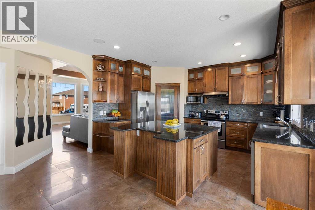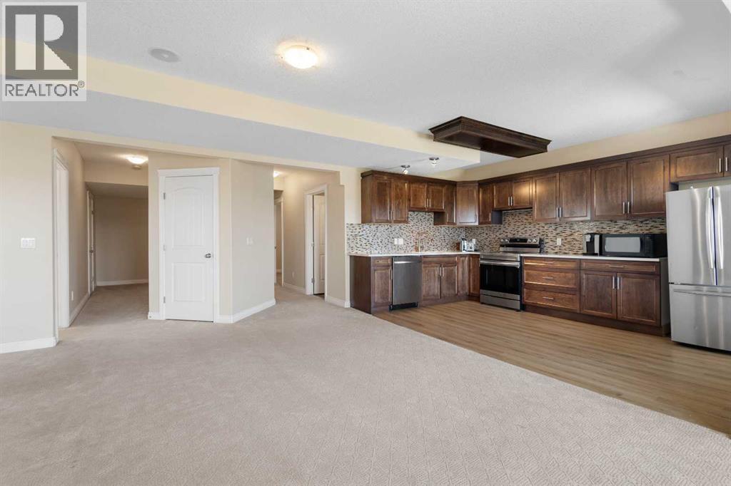 Welcome to this exceptional 0.25ac, 2-storey walk-out, perfectly situated on a quiet cul-de-sac and backing onto serene green space in the charming community of Langdon. Offering just under 4,000 sq ft of beautifully developed living space, this home features 6 bedrooms, 5 full bathrooms, and an attached triple car garage — ideal for growing families or those seeking luxury and comfort. Step into a grand foyer with soaring ceilings and expansive windows that flood the space with natural light. The open-concept design seamlessly connects the living room, chef’s kitchen, and dining areas, creating a warm and inviting atmosphere. The kitchen is a culinary dream, showcasing rich wood cabinetry, granite countertops, stainless steel appliances, a large central island, and a separate pantry. The adjacent dining nook is perfect for family meals, while the formal dining room offers ample space for hosting gatherings and celebrations. Upstairs, you’ll find four generously sized bedrooms, including two primary suites, each complete with private ensuites and walk-in closets. A versatile bonus loft provides the perfect setting for a family room, home office, or play area. The fully finished, illegal suited walk-out basement expands your living space with a large recreation room, a second kitchen, two additional bedrooms, and a full 4-piece bath — ideal for extended family, guests, or rental potential. Step outside to your private backyard oasis featuring a spacious deck and patio area, all overlooking peaceful green space with no rear neighbors. The triple car garage is complemented by a massive driveway, offering ample parking for multiple vehicles or an RV. Located just minutes from Boulder Creek Golf Course and with easy access to the mountains, this home is a dream for outdoor enthusiasts. Langdon offers a strong sense of community, fantastic local amenities, and incredible value — all while providing a quick, convenient commute to Calgary. This is luxury living at its fines t — don’t miss your opportunity to call this beautiful property home. Book your private tour today! (id:21083)