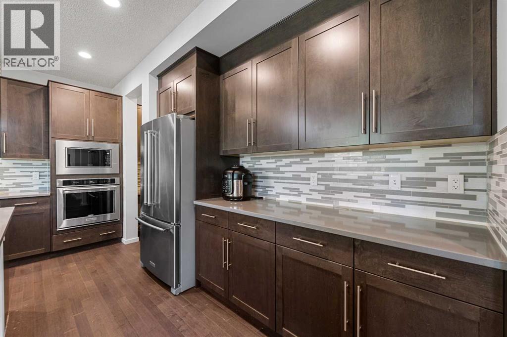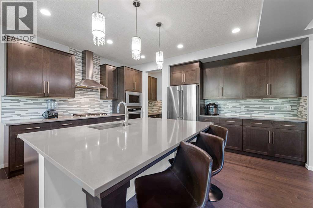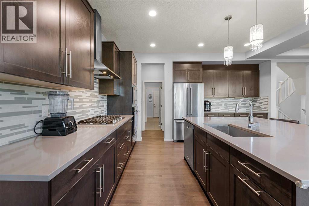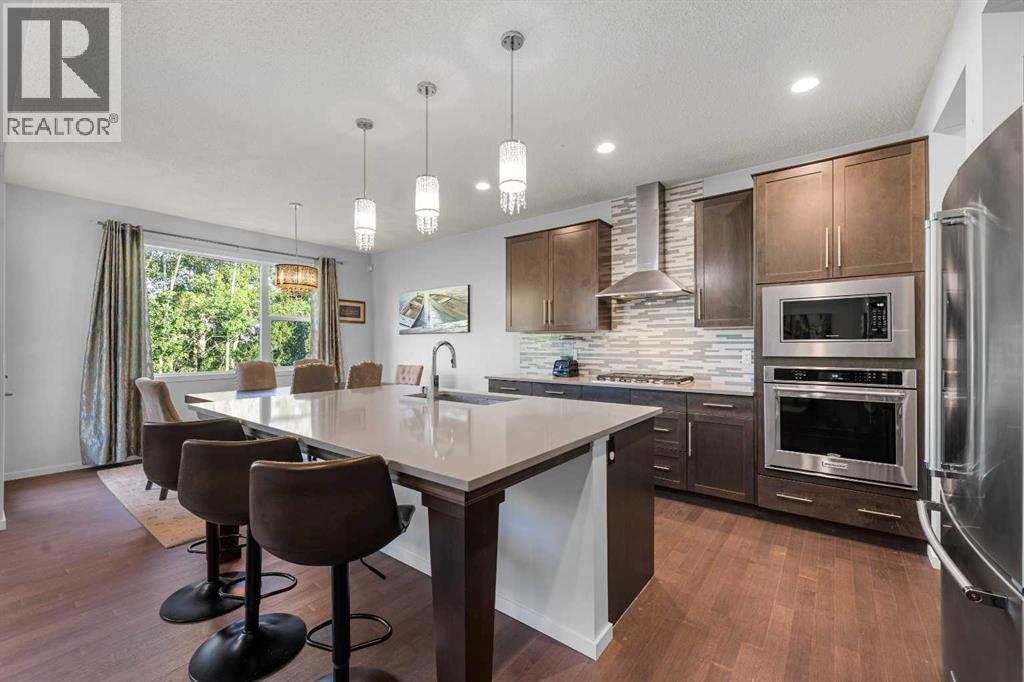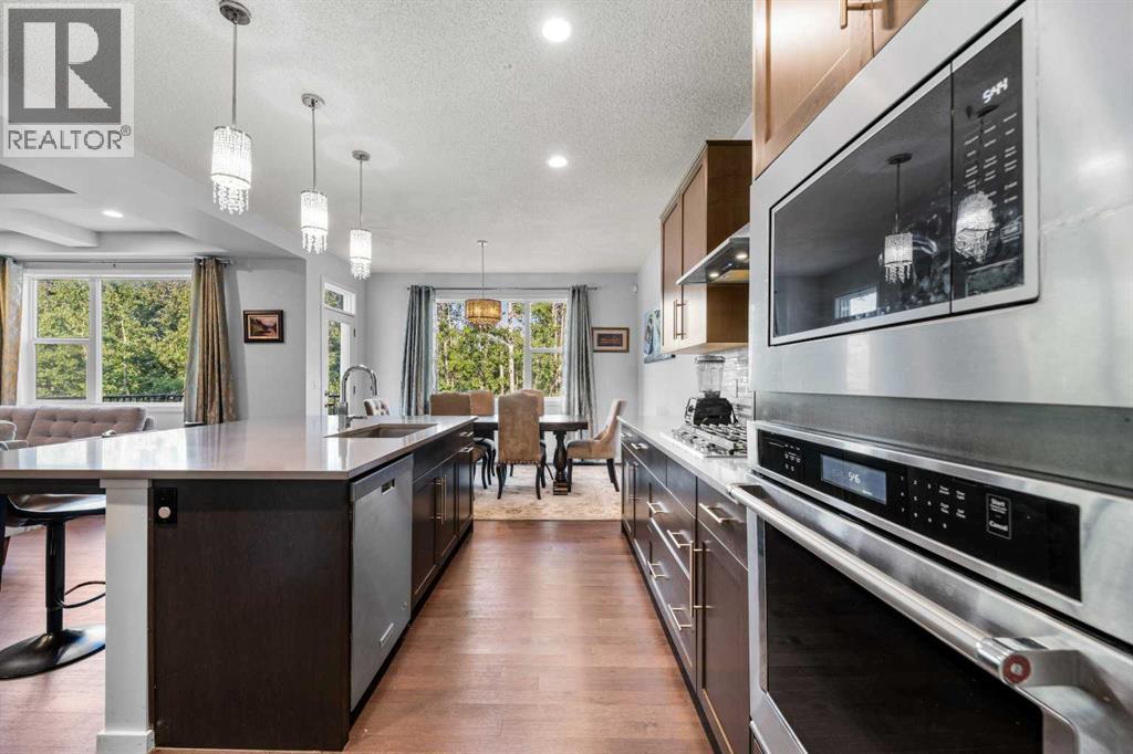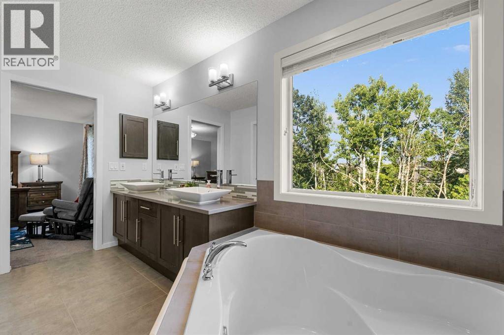 Step into this spacious 2-storey detached home in the desirable community of Walden, offering over 2,400 sq.ft. of living space with 3 bedrooms, 2.5 bathrooms, and an attached double garage—perfect for your growing family. WALK-OUT BASEMENT and BACKS ONTO GREEN SPACE. The open-concept main floor is filled with natural light and features beautiful hardwood flooring throughout. A welcoming foyer leads to the bright living room, ideal for cozy evenings by the gas fireplace. The modern kitchen is equipped with quartz countertops, SS appliances, stylish cabinetry, a large pantry, and a generous island with seating, while the dining area opens to a large deck—perfect for entertaining or summer BBQs. A main floor office/flex space, mudroom, and 2-pc bath add everyday functionality, plus central A/C ensures year-round comfort. Upstairs, a central bonus/family room offers extra lounging space, along with a large laundry room, two generous bedrooms—each with walk-in closets—and a shared 3-pc bath. The primary suite features its own walk-in closet and a luxurious 5-pc ensuite with dual quartz vanities, a soaking tub, and a separate shower. The walk-out unfinished basement backs directly onto green space, ready for your personal touch. Other features include a rough-in gas line in the garage for heating the garage, and a 3-zone furnace system, all floors controlled separately. Outside, the fully fenced backyard provides plenty of room for kids to play and pets to roam. Ideally located near schools, shopping, transit, parks, pathways, recreation centres, and multiple golf courses—close to the Township Shopping Centre, numerous ponds and green spaces, the Wolf Willow off-leash dog park, All Saints High School, and the South Health Campus, with quick access to Macleod Trail, Stoney Trail, and Deerfoot Trail. Call to book your private viewings today! (id:21083)