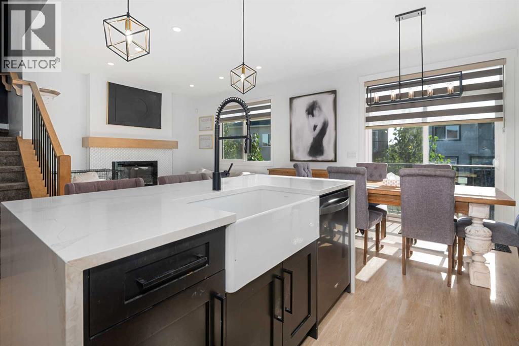 MASSIVE PIE LOT - PREMIUM CUSTOM UPGRADES - NEARLY NEW - PEACEFUL QUIET NEIGHBOURHOOD. Now available in one of Crossfield’s most established and peaceful neighborhoods, this exceptional custom home built in 2022 sits on a generous pie-shaped lot and blends high-end modern features with thoughtful family-friendly design. From the moment you enter, you'll notice the abundance of natural light and the expansive feel created by 9-foot ceilings and stylish vinyl plank flooring throughout the main floor. At the heart of the home is a stunning chef’s kitchen boasting waterfall quartz countertops on both sides of the island, a large sink, ample cabinetry, and upgraded Whirlpool appliances. The expansive pantry offers practical storage, while upgraded lighting and plumbing fixtures elevate the entire space with a sleek, contemporary finish. The adjoining living area features a built-in electric fireplace with a tasteful mantle, creating the perfect area for relaxing or entertaining. Nearby, the spacious front entry closet, convenient half bath, and access to a double attached garage. Upstairs, you’ll find three generously sized bedrooms and two full bathrooms, including a luxurious primary retreat with heated tile floors, dual sinks, a glass enclosed walk-in tiled shower and a large walk-in closet. A versatile flex room offers the perfect space for a home office, media room, or play area, while a dedicated laundry room offers even more convenience and versatility. The basement, with its three large above-grade windows and tall ceilings, is waiting for your final touch or it makes the perfect hassle free storage area. Outdoors, the fully fenced yard—finished with premium vinyl fencing is expertly landscaped and includes a dog run directly accessible from the deck, and wiring ready for a hot tub. Backing onto tranquil green space and scenic walking paths, this backyard offers privacy and a true connection to nature. Central air conditioning and an upgraded blinds package help keep you cool during the hot summer and add even more appeal. Close to shopping, restaurants, school and all amenities Crossfield has to offer and With this many upgrades, this beautiful move in ready home wont last long. Book your private viewing today! (id:21083)