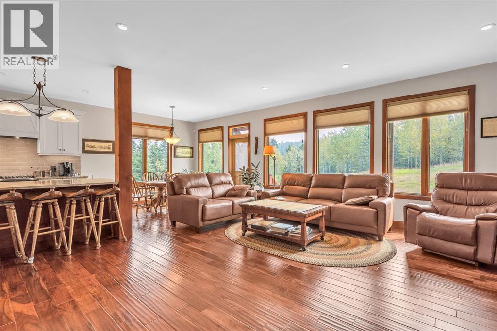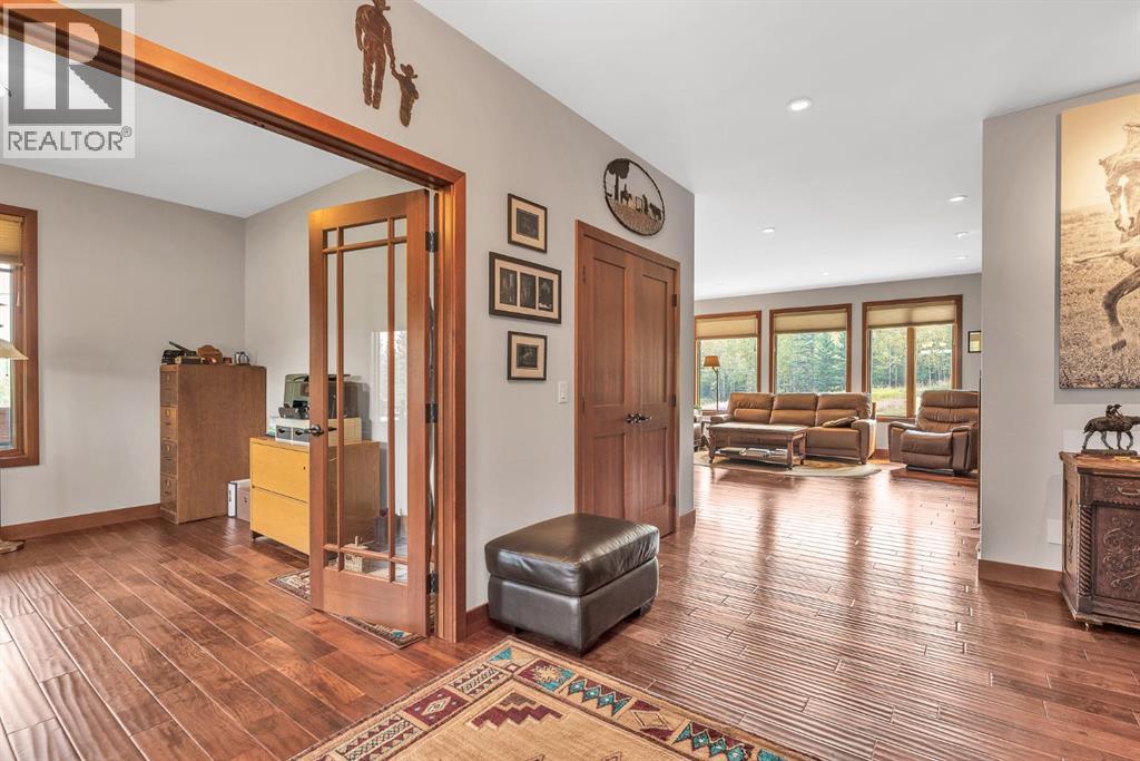 If you are looking for a combination of privacy, practicality and prestige look no further than this immaculate estate. Situated on 40.67 acres of land 7kms North on Jamieson Rd from the 1a, you are located an easy 25 minutes to Cochrane and a mere 40 minutes to downtown Canmore. View the aerial photos and see the combination of treed land, functional cleared areas for animal enclosures, the Shop and Garage spaces available plus the natural beauty all around for your personal enjoyment. Combined with an immaculate and turnkey personal residence, this property truly has something for everyone.The sense of seclusion and exclusivity is immediate when approaching the home on the winding driveway. This feeling is supported with functionality as you approach your first outdoor space. The 32x50 shop is outfitted with 220Volt power and multiple 110Volt outlets for the most ambitious home handyman. Wired and outfitted for welding equipment, the size and functionality of this Shop is hard to find. The grand jewel is next; your 3 car, in-floor heated, fully finished and painted, detached garage. Completed in 2023 with all receipts, this incredible addition truly adds to the prestige of this property. In addition, the detached 2 car garage with in-floor heating is ready to be set up as a wood working shop, extra storage space or an area for the serious hobbyist. The generator is located here, a Generac Guardian 22KW Unit running on natural gas that has the ability to power the entire property. The quality and craftsmanship of the 2500sf plus home needs to be seen to be appreciated. Approaching the entrance, the partial wrap around porch and quality Lux front door gives the feeling of “I have arrived.” Upon entry, find Acacia hardwood flooring throughout combined with included Hunter Douglas window dressings. The centrepiece feature of the living room is the Rumford fireplace, an exceptional upgrade allowing for cozy winter evenings by the fire. Ample counter space, Stainles s Steel appliances, gas cooktop and extensive kitchen storage continue the quality and well thought out home design. Primary bedroom with ensuite is on the main floor and the primary bedroom includes an external Lux door to the West facing deck. Laundry on main floor with Electrolux appliances, storage space and convenient laundry sink. Upstairs find a large media room and two bedrooms, one with walk in closet plus the main bathroom including double vanity. The fully finished basement includes heated flooring throughout, a storage room for extra fridge/freezer and dry goods storage, plus two additional spaces that could be used for a home office, work area or hobby area. The home has an AC unit and the property is served by a Well with 8GPM flow rate.Outdoor amenities include BBQ and Firepit area, South facing back deck, Dog Enclosure, invisible fence, Rundle Rock, landscaping and drainage. If location, prestige, quality and functionality are what you desire, please book with your Realtor today. (id:21083)