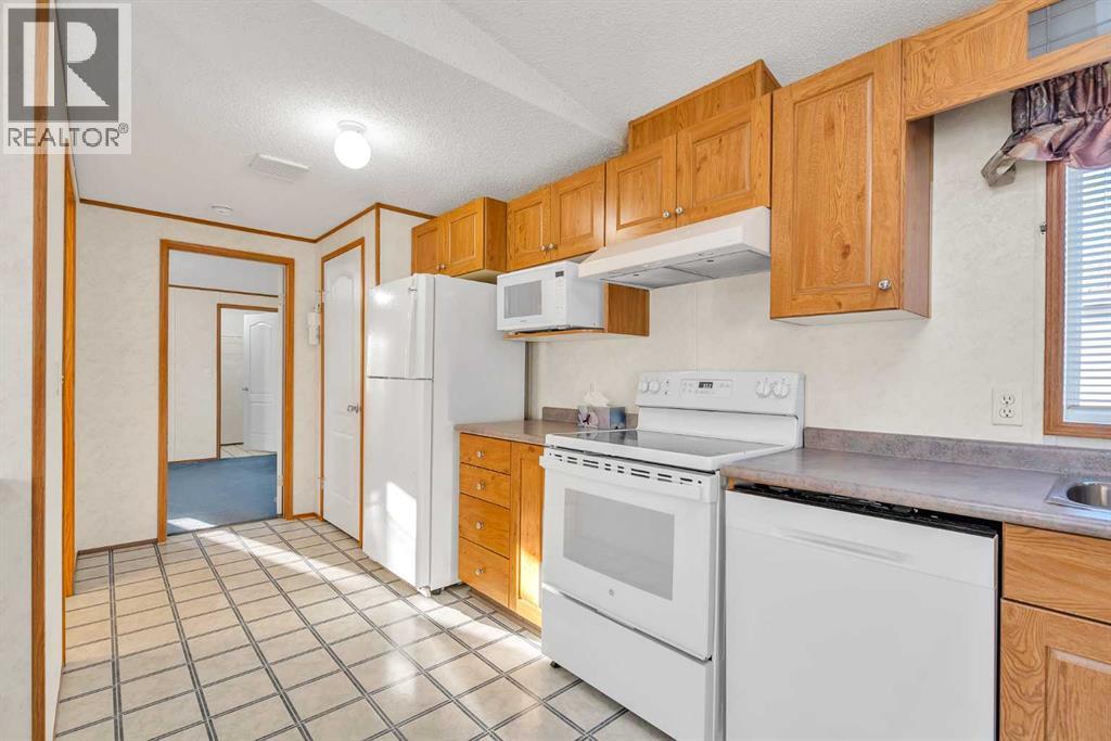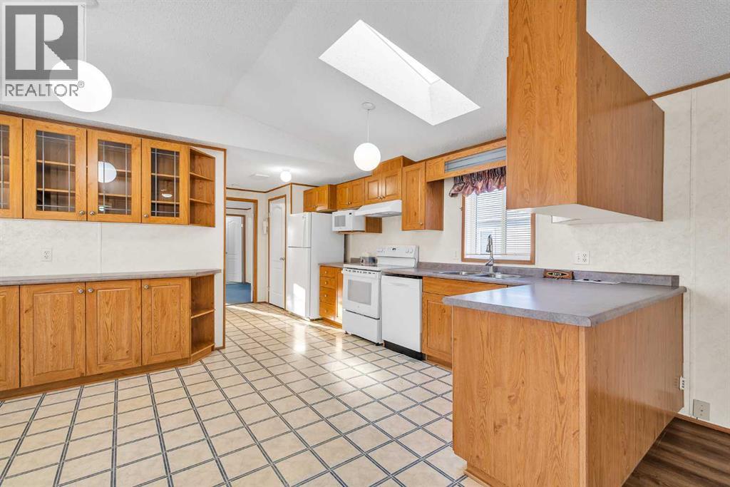 Welcome to this beautifully maintained Winalta 837 modular home offering 1,202 sq. ft. of comfortable, open concept living in the heart of Diamond Valley. This 3-bedroom, 2-bathroom home sits on a quiet cul-de-sac within a friendly, all-ages community — just steps from local amenities and the beauty of small-town living. Enjoy a bright, open layout that seamlessly connects the kitchen, dining, and living areas, perfect for entertaining or relaxing with family. Step outside to your fully fenced backyard, featuring a lovely garden, greenhouse, and pergola, your own private outdoor retreat. Recent updates include a new roof (2021), upgraded flooring (laminate, 2022), new furnace (2023), new HWT (2024), and water distiller on kitchen sink, giving you peace of mind for years to come. With lot lease and park manager approval, this move-in-ready home offers an affordable and welcoming lifestyle in Diamond Valley’s sought-after park. Call your realtor today! (id:21083)