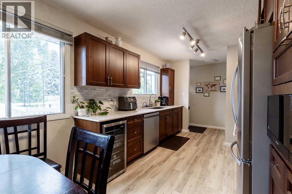 This Southview bi-level offers exactly what you need – solid updates, RV Parking, great outdoor space with UG Sprinklers, and room to make it your own. Key updates include High efficiency furnace, Central air, Extra Attic Insulation, renovated bathroom and beautiful kitchen. With 4 bedrooms and 2 full bathrooms, it’s a welcoming home that has a great use of space. The main floor features a spacious living room that flows into a clean, modernized kitchen with quartz countertops, stainless steel appliances, a gas stove with vented hood, built-in microwave, LG dishwasher, and a wine cooler – a perfect setup for cooking or entertaining. Down the hall, you’ll find two comfortable bedrooms and a refreshed full bathroom with updated tile and vanity. From the kitchen, step out to the back deck finished with metal railings – ideal for enjoying the sunshine or weekend barbecues while overlooking the sodded yard with underground sprinklers (Front yard had sod and UG Sprinklers installed in a recent year as well). The lower level is built for good times – a cozy family room with a character-filled bar area complete with a faux-brick backdrop, diamond plate countertop, and its own bar fridge. Whether it’s movie nights, game days, or casual get-togethers, this space makes entertaining effortless. Two additional bedrooms, a full bathroom, and a laundry area with built-in cabinetry and excellent LG Washer and Dryer complete the lower level. Outside, you’ll find even more to appreciate – a brand-new shingles, low maintenance aluminum siding & stocco, fire pit area, garden shed, and multiple parking options including a large paved pad and RV/boat space. Located in Medicine Hat’s established Southview neighborhood, you’re close to parks, schools, shopping, and walking paths – everything you need, right where you want to be. A home made for everyday comfort and easy entertaining – contact your real estate agent today to book a private showing. (id:21083)