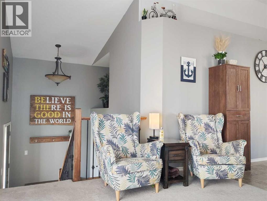 This 1,032 sq. ft. bi-level in Nobleford is bright, open, and move-in ready. The main floor features vaulted ceilings, a welcoming kitchen with corner pantry, island, and stainless appliances, plus 2 bedrooms and a full bath. Downstairs you’ll find big windows, 2 more bedrooms, another full bath, and a spacious family/games area. Outside offers a fenced yard, 20’x22’ finished and heated double garage, and extra parking. Just steps to the water park and close to schools and amenities — the perfect spot for a growing family! (id:21083)