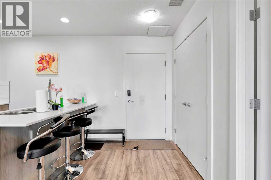 Discover exceptional comfort and modern style in this beautifully appointed two-bedroom plus den condominium, perfectly designed for contemporary living. Built with solid concrete and steel construction, this residence offers outstanding durability, sound insulation, and long-term value. The open-concept layout is bright and inviting, featuring wide-plank flooring, polished quartz countertops, and premium Fisher & Paykel appliances, including an induction cooktop, convection microwave, and built-in dishwasher. The thoughtful design extends throughout with in-suite laundry, a titled underground parking stall, and geothermal heating and cooling for year-round efficiency. The primary bedroom includes a spacious walk-in closet and a private ensuite, while the additional bedroom and den provide flexibility for guests or a home office. Ideally situated just steps from the C-Train, close to local shops, restaurants, Westhills, and a short commute to downtown, this home offers both convenience and lifestyle. Whether you’re a professional, downsizer, or investor, this residence combines quality construction, modern finishes, and an unbeatable location for effortless urban living (id:21083)