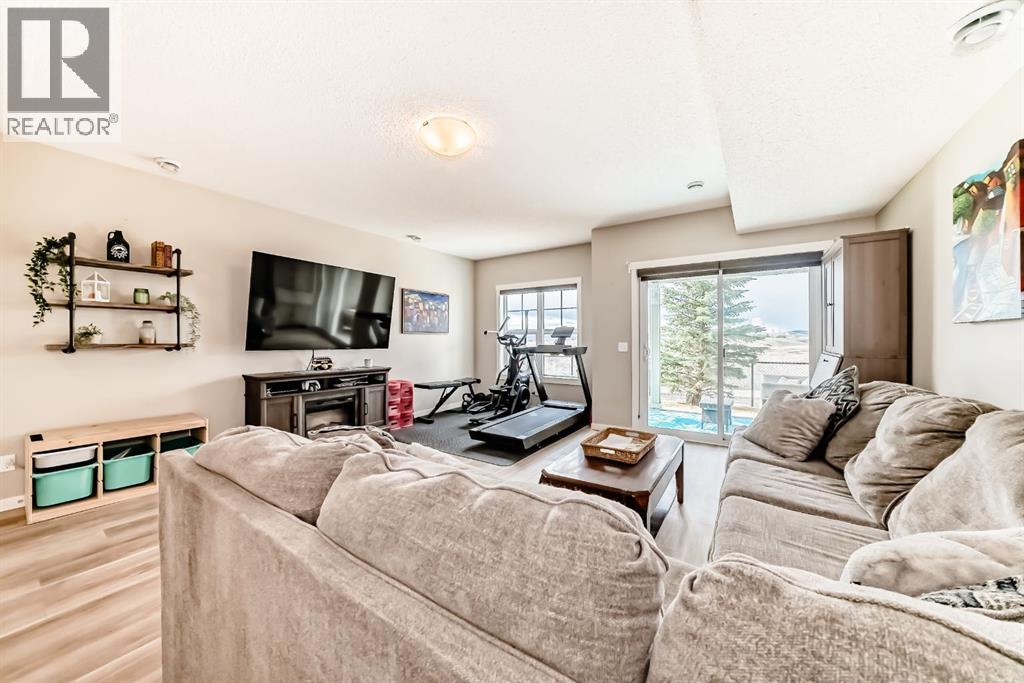 Discover effortless living in this bright and spacious 3-bedroom walkout townhome, ideally located in the popular Trading Post development of Sunset Ridge. Total finished area of 1931sf with 1496sf above grade. Perfectly positioned at the entrance of the community, this well-maintained home combines comfort, convenience, and unbeatable Rocky Mountain views from top to bottom. Step inside to a welcoming entryway that leads up to a sunlit, west-facing living area and kitchen—where large windows showcase sweeping mountain vistas that will take your breath away. Whether it’s a quiet morning coffee or an evening glass of wine on the deck, you’ll enjoy front-row seats to Cochrane’s finest sunsets and picturesque views. The main level features updated vinyl flooring throughout and a newer (2022) dishwasher and upgraded culinary sink. Step outside to your private balcony with plenty of space for grilling, relaxing and entertaining.Upstairs, you’ll find two bedrooms and a full bathroom—ideal for kids, guests, or a home office. Continue up to your private retreat: a top-floor primary suite complete with a walk-in closet, full ensuite, and those signature mountain views greeting you each morning. Upper-floor laundry adds convenience with room for built-in storage space.Downstairs, the fully finished walkout basement offers even more flexible living space. With matching updated flooring and access to a covered patio and shared green space, it’s perfect for game nights, music, teen hangouts, or a cozy media room. Bring your propane fire ring, lounge chairs and enjoy the sunset! Enjoy low-maintenance living with condo fees covering snow removal, grounds maintenance, reserve fund contributions and insurance. Additional storage areas and a single-car garage with interior access complete the package—making cold winter mornings a whole lot cozier!This is a fantastic opportunity to own a move-in ready, multi-level condo with room to grow, relax, and take in one of the best views in town. Sunset Ridge offers convenient access to multiple schools, parks and other amenities. (id:21083)