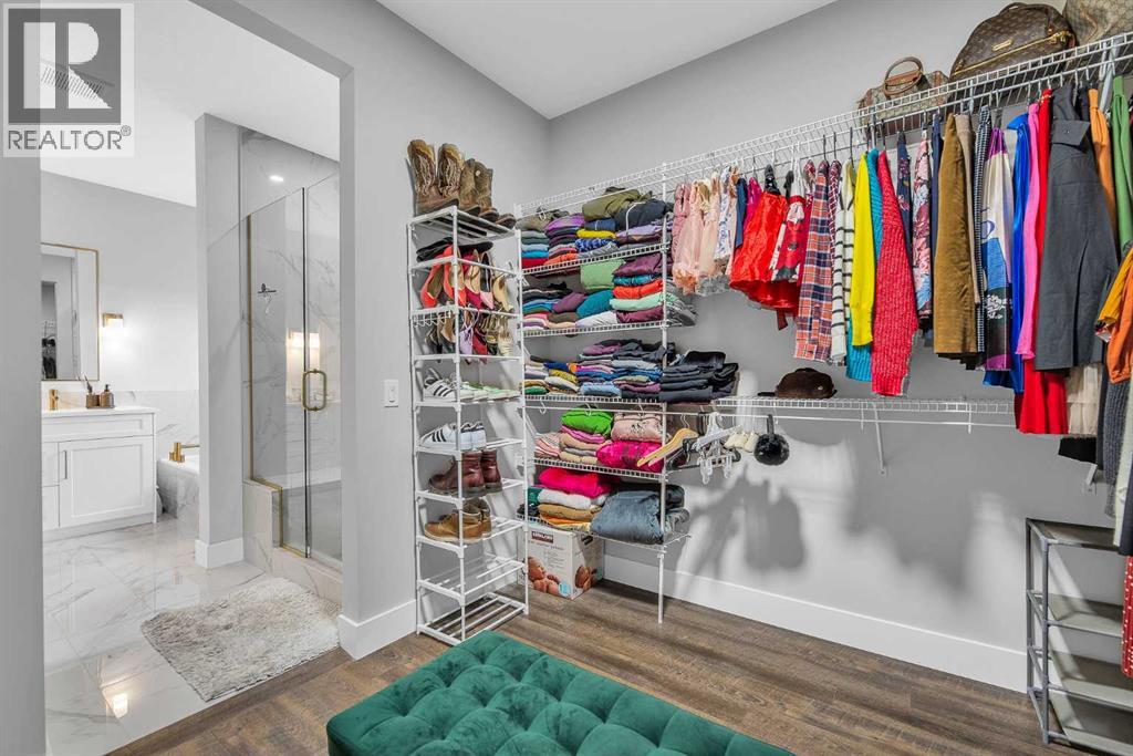 5 Bedrooms Above Grade | 4 Bathrooms | Three Level Design | Backs Onto Green Space | Upgraded Bosch Appliances | 9 ft Ceilings on All Levels | Heated Garage.Welcome to this stunning 2024 built home in Pine Creek, offering more than 2,700 square feet across three beautifully designed levels. Warm, bright, and thoughtfully upgraded, this home blends comfort, style, and modern convenience in a truly welcoming way.The main floor features a sun filled open layout with upgraded LVP flooring and a gorgeous chef’s kitchen equipped with Bosch appliances, a gas cooktop, hood fan, quartz countertops throughout, and a Silgranit upgraded sink. The kitchen flows seamlessly into the bright living and dining areas, all overlooking the peaceful green space behind the home. This level also includes a main floor bedroom and a full four piece bathroom, offering exceptional flexibility for guests, extended family, or a private workspace.The second level offers three spacious bedrooms, each with its own walk in closet, along with a bright bonus room and a full four piece bathroom. One bedroom enjoys its own ensuite, and the laundry room is conveniently located on this floor.The third level is a private retreat featuring the primary bedroom, a relaxing five piece ensuite, a generous walk in closet, a sunny balcony, and an additional flex room perfect for a lounge, workspace, or nursery.This home includes nine foot ceilings on every level, CAT 6 wiring throughout, a water softener, central AC, EV charger rough in, a gas line for backyard barbecues, and a heated garage for year round comfort. The backyard is a standout feature, backing directly onto quiet green space with no neighbors behind.Modern, spacious, and perfectly located in beautiful Pine Creek, this home is ready to welcome its next family. (id:21083)