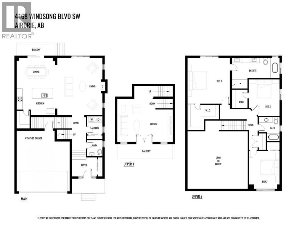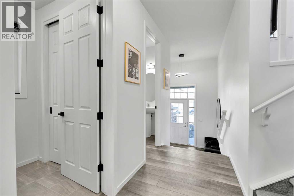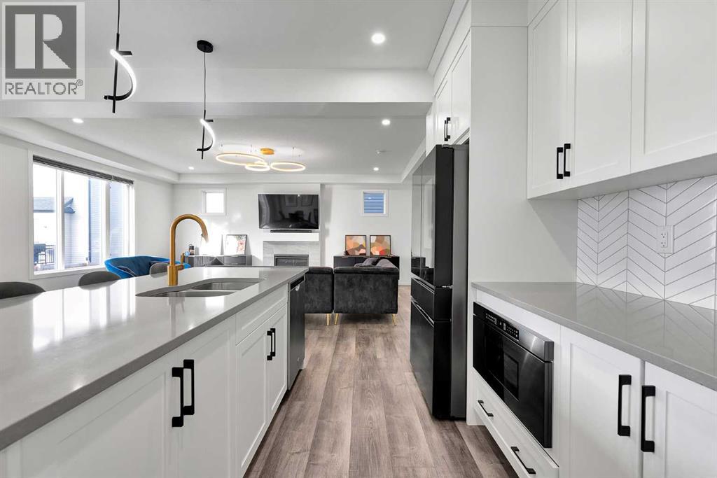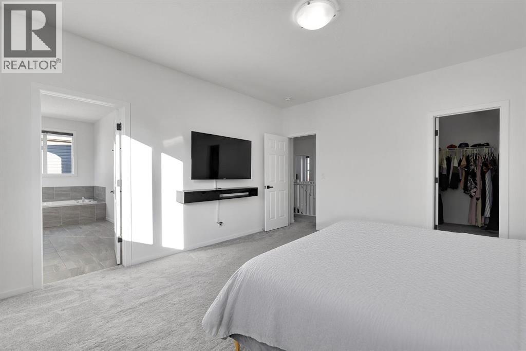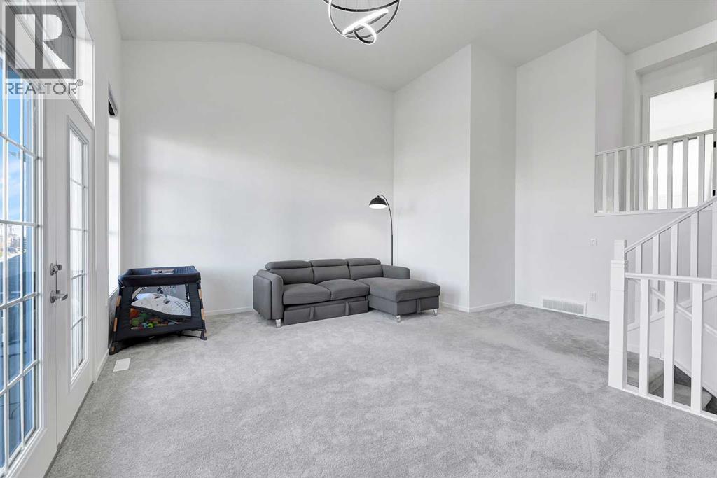 MODERN FAMILY HOME IN SOUGHT-AFTER SOUTHWINDS! BUILT IN 2021 | WEST-FACING BACKYARD | AIR-CONDITIONING | STEPS TO PARKS, SCHOOLS & SHOPPINGWelcome to this MODERN DETACHED HOME offering 2,409 SQ.FT. of beautifully finished living space plus a 777 SQ.FT. unfinished basement, ready for your personal touch! Designed with today’s family in mind, this home combines style, comfort, and convenience in one of Airdrie’s most popular communities.Step inside and be greeted by a bright, open-concept main floor featuring 9FT CEILINGS and VINYL PLANK FLOORING. The stunning kitchen impresses with QUARTZ COUNTERTOPS, a HERRINGBONE TILE BACKSPLASH, BLACK STAINLESS STEEL SMART FRIDGE, WALK-IN PANTRY, and a large ISLAND WITH SEATING—perfect for casual dining. The spacious living room with TRAY CEILING centers around a TILED GAS FIREPLACE WITH A MODERN MANTEL, while the adjacent dining area features PATIO DOORS TO THE DECK -ideal for BBQs and A SUNNY WEST-FACING BACKYARD. Upstairs, the BONUS ROOM with 14FT VAULTED CEILINGS and FRENCH DOORS TO A PRIVATE BALCONY offers the perfect space for family movie nights or kids play area. The PRIMARY SUITE is a true retreat with a WALK-IN CLOSET and a SPA-INSPIRED ENSUITE featuring a SOAKER TUB, DOUBLE VANITY, and OVERSIZED SHOWER. Two additional spacious bedrooms, a full family bathroom, and a large linen closet complete the upper level.The UNFINISHED BASEMENT (insulated, with egress windows and bathroom rough-in) provides endless potential for future development. Additional highlights include CENTRAL AIR-CONDITIONING and an ATTACHED DOUBLE GARAGE.Located in the FAMILY-FRIENDLY COMMUNITY OF SOUTHWINDS, this home is within walking distance to PARKS, PATHWAYS, SHOPPING, AND TRANSIT. The PICKLEBALL COURTS & PUMP TRACK are just minutes away. And the NEW SOUTH WINDSONG K–9 SCHOOL is opening Fall 2027. With easy access to Calgary and only 10 minutes to Stoney Trail, this location truly has it all!Don’t miss your chance to own this MODERN, MOVE -IN READY HOME IN A PRIME LOCATION — book your showing today and see why this could be the smart move for you! (id:21083)