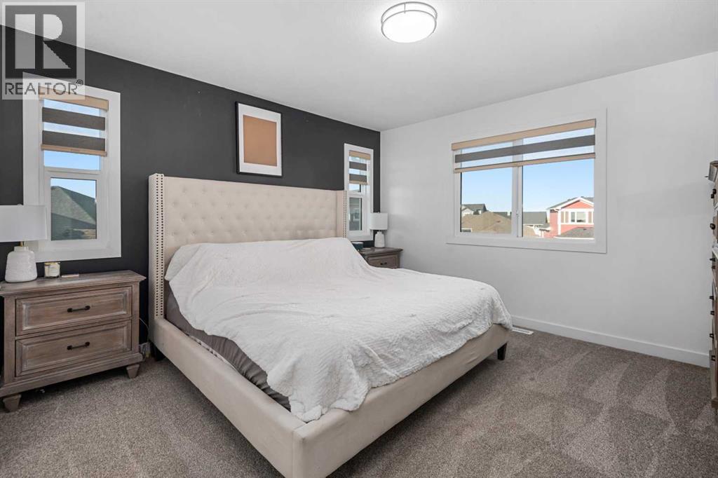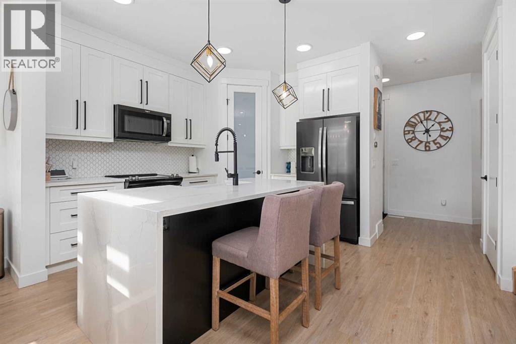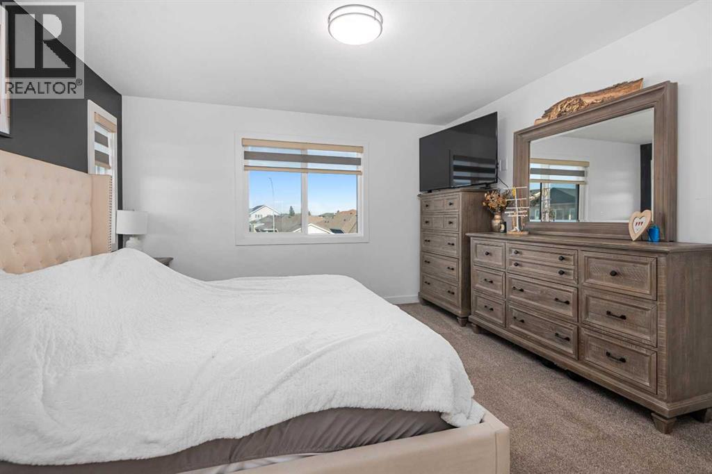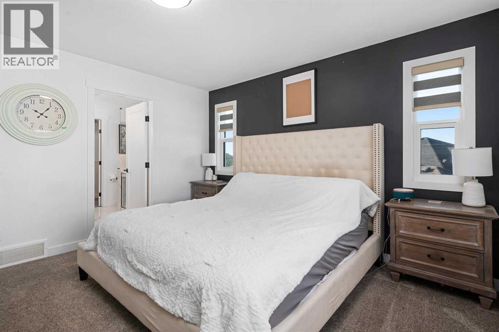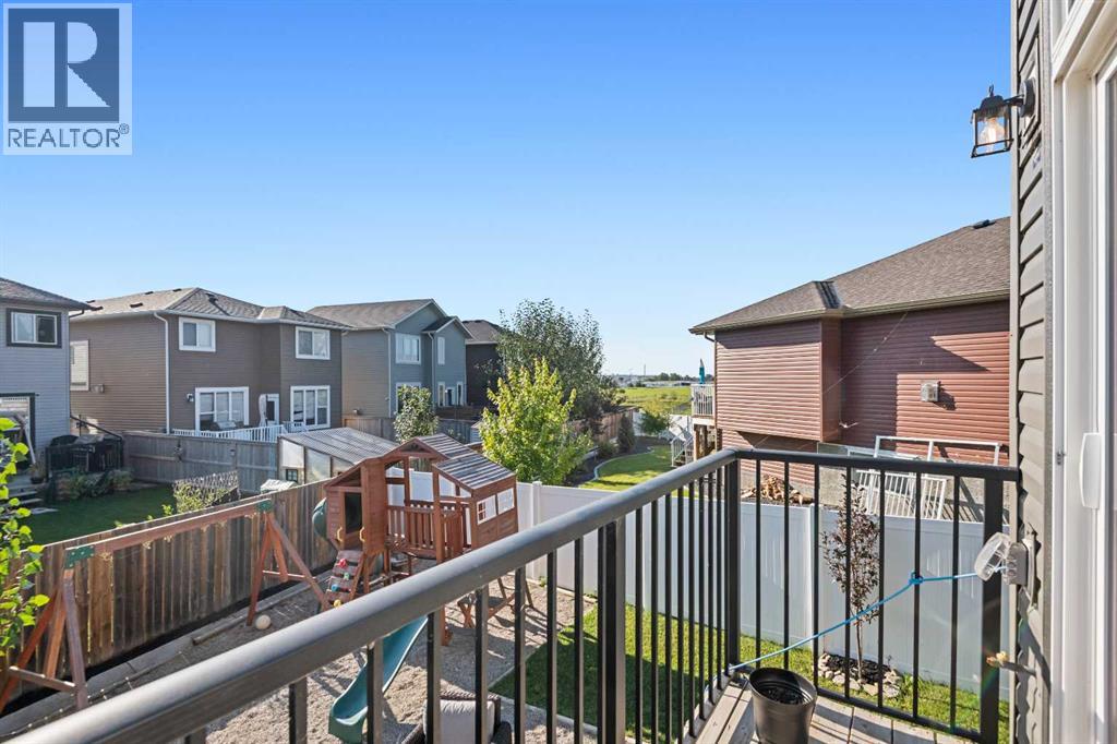 MASSIVE PIE LOT - PREMIUM CUSTOM UPGRADES - NEARLY NEW - PEACEFUL QUIET NEIGHBOURHOOD. Now available in one of Crossfield’s most established and peaceful neighborhoods, this exceptional custom home built in 2022 sits on a generous pie-shaped lot and blends high-end modern features with thoughtful family-friendly design. From the moment you enter, you'll notice the abundance of natural light and the expansive feel created by 9-foot ceilings and stylish vinyl plank flooring throughout the main floor. At the heart of the home is a stunning chef’s kitchen boasting waterfall quartz countertops on both sides of the island, a large sink, ample cabinetry, and upgraded Whirlpool appliances. The expansive pantry offers practical storage, while upgraded lighting and plumbing fixtures elevate the entire space with a sleek, contemporary finish. The adjoining living area features a built-in electric fireplace with a tasteful mantle, creating the perfect area for relaxing or entertaining. Nearby, the spacious front entry closet, convenient half bath, and access to a double attached garage. Upstairs, you’ll find three generously sized bedrooms and two full bathrooms, including a luxurious primary retreat with heated tile floors, dual sinks, a glass enclosed walk-in tiled shower and a large walk-in closet. A versatile flex room offers the perfect space for a home office, media room, or play area, while a dedicated laundry room offers even more convenience and versatility. The basement, with its three large above-grade windows and tall ceilings, is waiting for your final touch or it makes the perfect hassle free storage area. Outdoors, the fully fenced yard—finished with premium vinyl fencing is expertly landscaped and includes a dog run directly accessible from the deck, and wiring ready for a hot tub. Backing onto tranquil green space and scenic walking paths, this backyard offers privacy and a true connection to nature. Central air conditioning and an upgraded blinds package help keep you cool during the hot summer and add even more appeal. Close to shopping, restaurants, school and all amenities Crossfield has to offer and With this many upgrades, this beautiful move in ready home wont last long. Book your private viewing today! (id:21083)