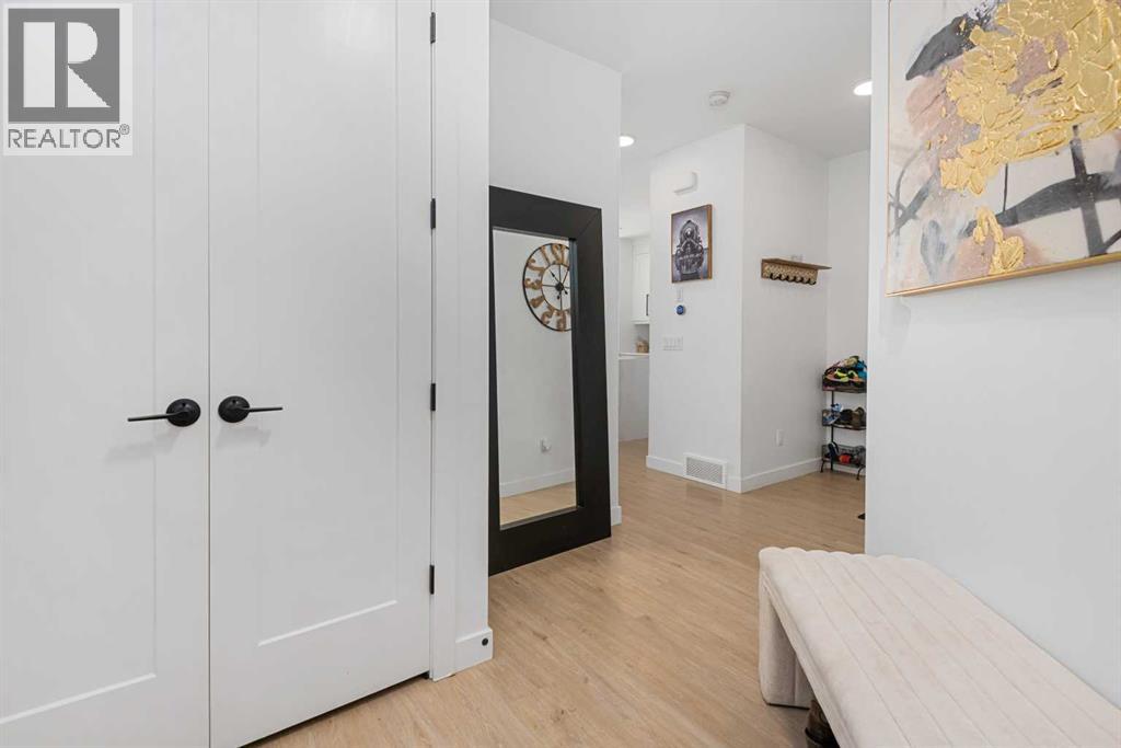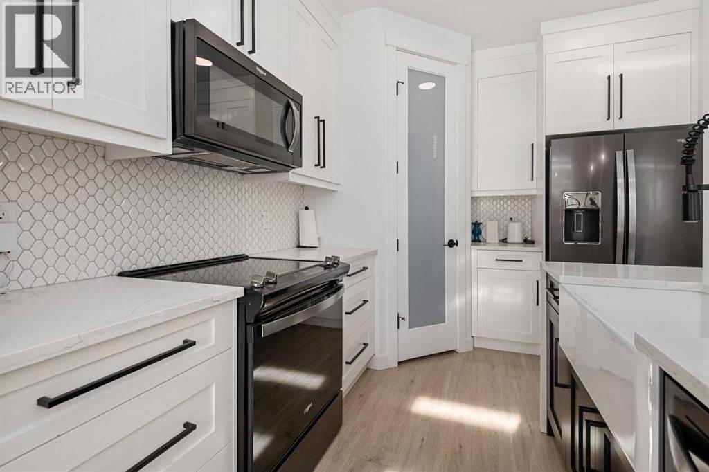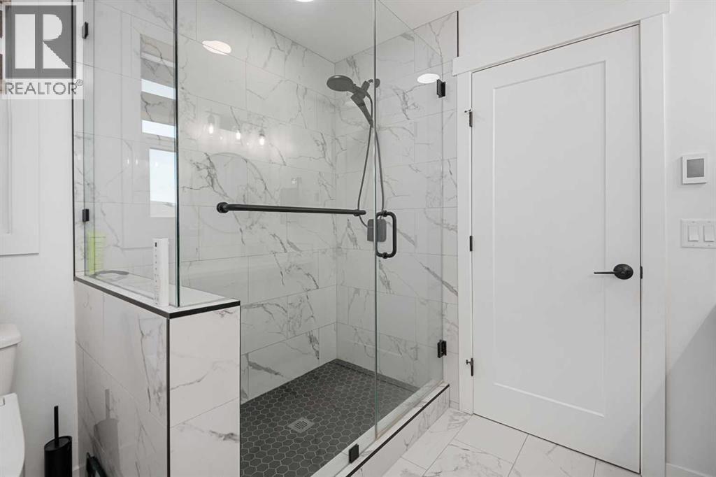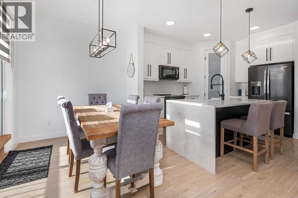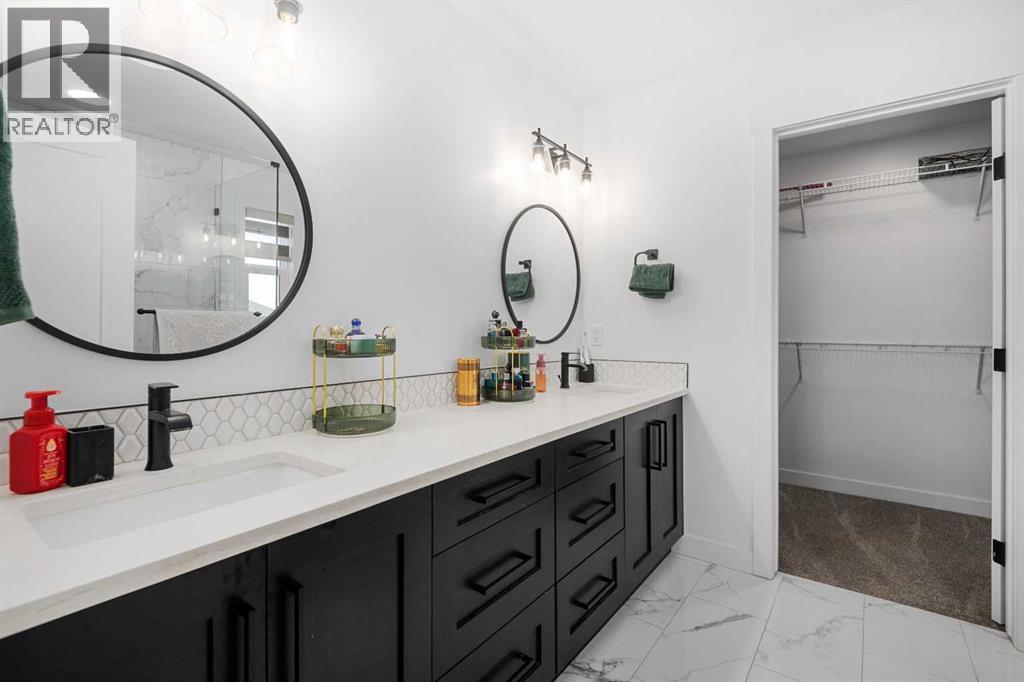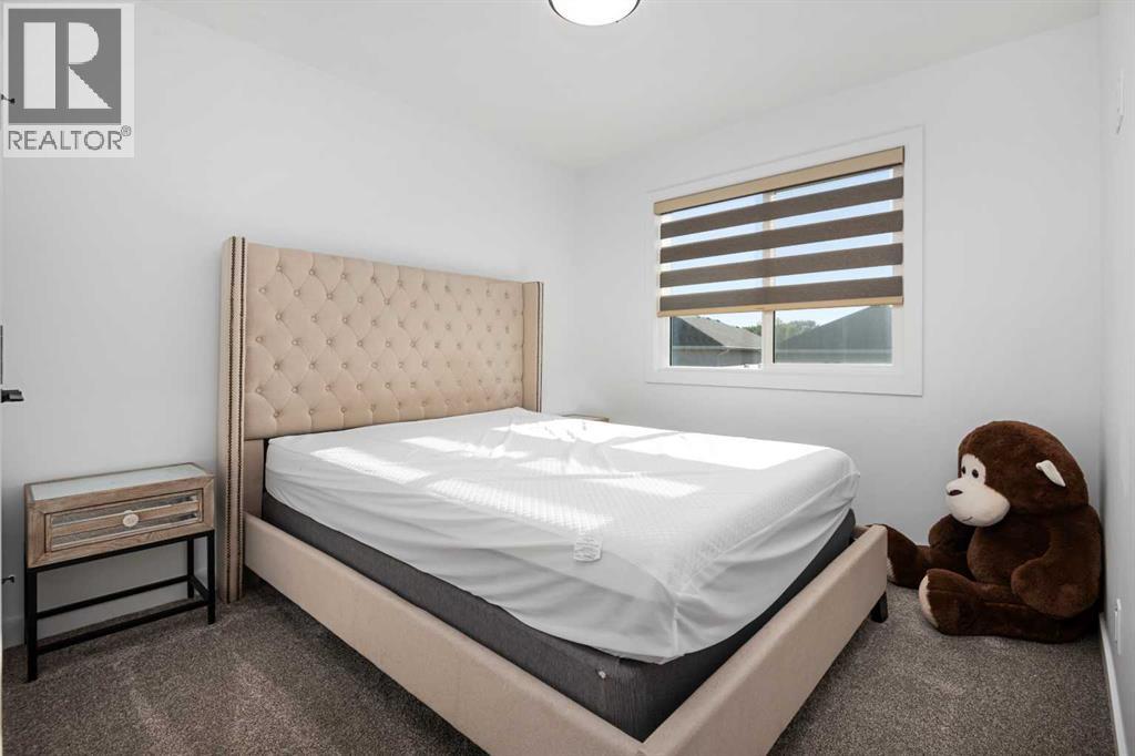 MASSIVE PIE LOT - PREMIUM CUSTOM UPGRADES - NEARLY NEW - PEACEFUL QUIET NEIGHBOURHOOD. Now available in one of Crossfield’s most established and peaceful neighborhoods, this exceptional custom home built in 2022 sits on a generous pie-shaped lot and blends high-end modern features with thoughtful family-friendly design. From the moment you enter, you'll notice the abundance of natural light and the expansive feel created by 9-foot ceilings and stylish vinyl plank flooring throughout the main floor. At the heart of the home is a stunning chef’s kitchen boasting waterfall quartz countertops on both sides of the island, a large sink, ample cabinetry, and upgraded Whirlpool appliances. The expansive pantry offers practical storage, while upgraded lighting and plumbing fixtures elevate the entire space with a sleek, contemporary finish. The adjoining living area features a built-in electric fireplace with a tasteful mantle, creating the perfect area for relaxing or entertaining. Nearby, the spacious front entry closet, convenient half bath, and access to a double attached garage. Upstairs, you’ll find three generously sized bedrooms and two full bathrooms, including a luxurious primary retreat with heated tile floors, dual sinks, a glass enclosed walk-in tiled shower and a large walk-in closet. A versatile flex room offers the perfect space for a home office, media room, or play area, while a dedicated laundry room offers even more convenience and versatility. The basement, with its three large above-grade windows and tall ceilings, is waiting for your final touch or it makes the perfect hassle free storage area. Outdoors, the fully fenced yard—finished with premium vinyl fencing is expertly landscaped and includes a dog run directly accessible from the deck, and wiring ready for a hot tub. Backing onto tranquil green space and scenic walking paths, this backyard offers privacy and a true connection to nature. Central air conditioning and an upgraded blinds package help keep you cool during the hot summer and add even more appeal. Close to shopping, restaurants, school and all amenities Crossfield has to offer and With this many upgrades, this beautiful move in ready home wont last long. Book your private viewing today! (id:21083)