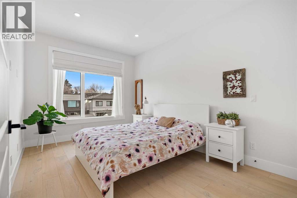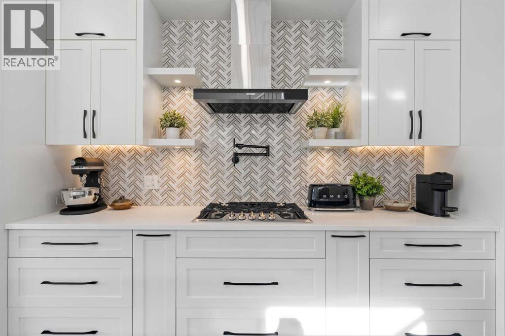 Welcome to this exceptional modern family home in the heart of the inner city, where thoughtful design and upscale finishes combine to create a truly refined living experience. Perfectly positioned to take advantage of both sunrise and sunset views, this beautifully crafted residence showcases meticulous attention to detail throughout. Step inside to a professionally curated interior featuring soaring 9-foot ceilings on two levels, wide-plank hardwood flooring spanning all three levels, and elegant marble tile accents. Restoration Hardware lighting paired with recessed lighting creates a warm and sophisticated atmosphere, while built-in speakers add to the home’s modern comfort. The designer kitchen is both stunning and highly functional, outfitted with professional-grade appliances including a gas cooktop, built-in oven and microwave, chimney-style range hood, and an impressive side-by-side refrigerator and freezer. Quartz countertops, floor-to-ceiling cabinetry, under-cabinet lighting, and abundant storage ensure the space is as practical as it is beautiful. Designed for effortless day-to-day living, the home also includes custom storage solutions throughout, a central vacuum system, and central air conditioning. The inviting living room features a striking marble-tiled fireplace framed by custom built-in cabinetry and shelving. Expansive floor-to-ceiling windows and a sliding patio door fill the space with natural light while seamlessly connecting the interior to the sunny west-facing backyard. A stylish powder room completes the main level. Upstairs, the primary suite offers a luxurious private retreat with soaring ceilings and a spa-inspired five-piece ensuite. Heated marble floors, a double vanity, a large steam shower with rain shower head, and an expansive walk-in closet create a space designed for relaxation. Two additional spacious bedrooms, a beautifully appointed main bathroom, and a conveniently located laundry room complete the upper level. The walk-ou t basement continues the home’s impressive design with nearly 9-foot ceilings and comfortable in-floor radiant heating. This level is ideal for entertaining, featuring a generous recreation room with a wet bar, a large fourth bedroom, and an additional bathroom perfect for guests or extended family. A well-designed mudroom with extensive storage adds even more functionality. Step outside to enjoy the private, low-maintenance backyard oasis. The heated saltwater pool can be warmed to hot-tub temperatures or used as an exercise pool with the training tether for fitness enthusiasts. Surrounding decking and professional landscaping create an inviting outdoor space for relaxing or entertaining. Completing the property is a heated and insulated double detached garage and beautifully landscaped front yard. Situated on a quiet street in the desirable inner-city community of Glenbrook, this home offers outstanding convenience with a short walk to all nearby amenities, plus quick access to Marda Loop. (id:21083)