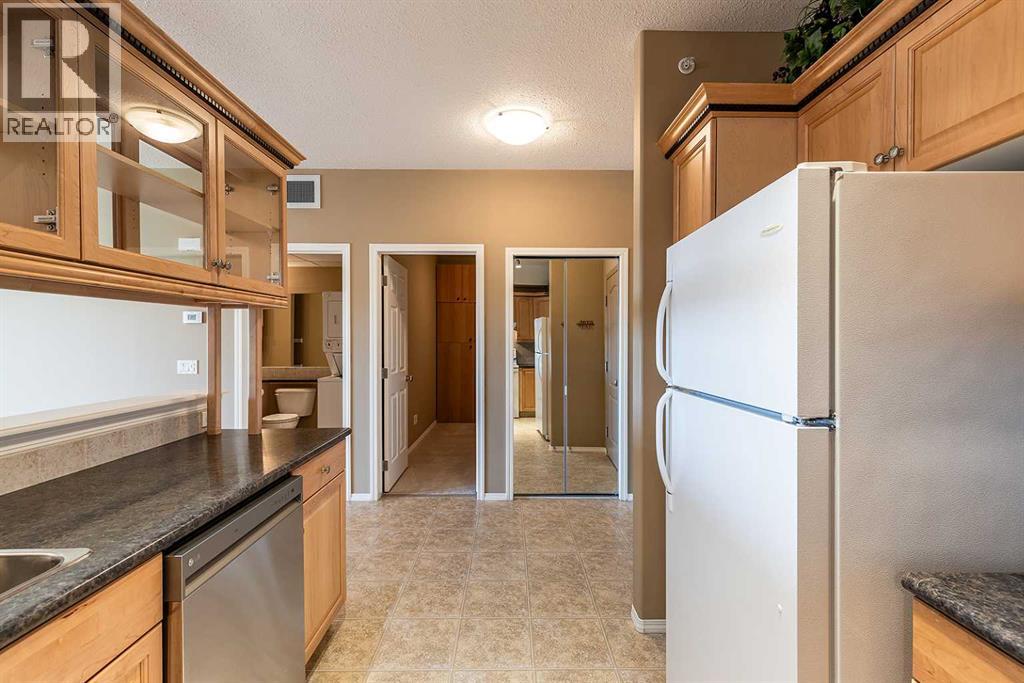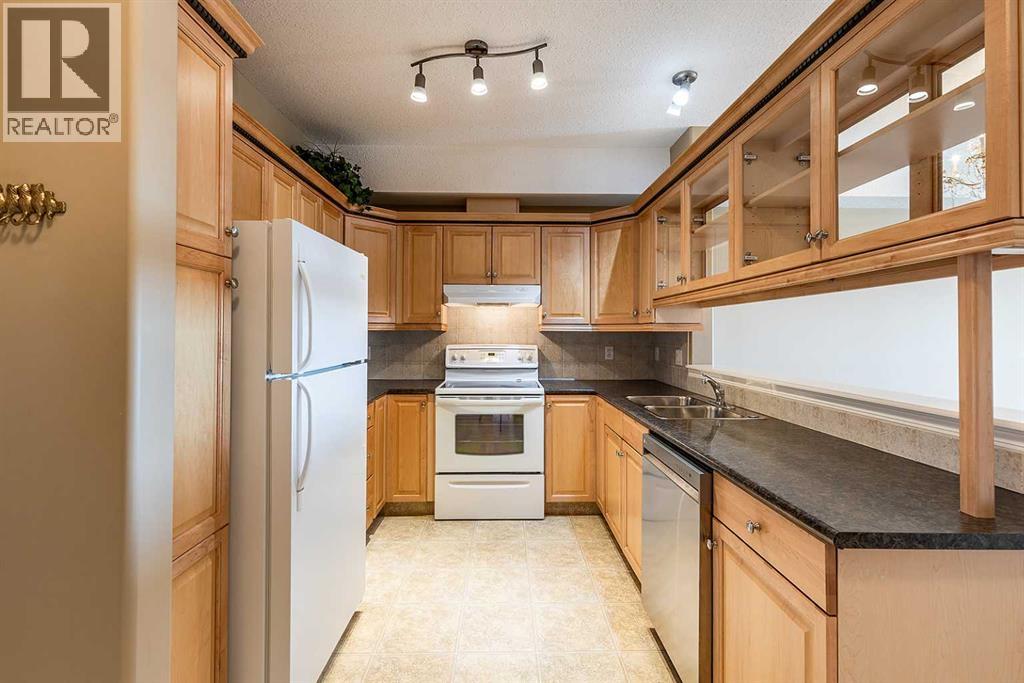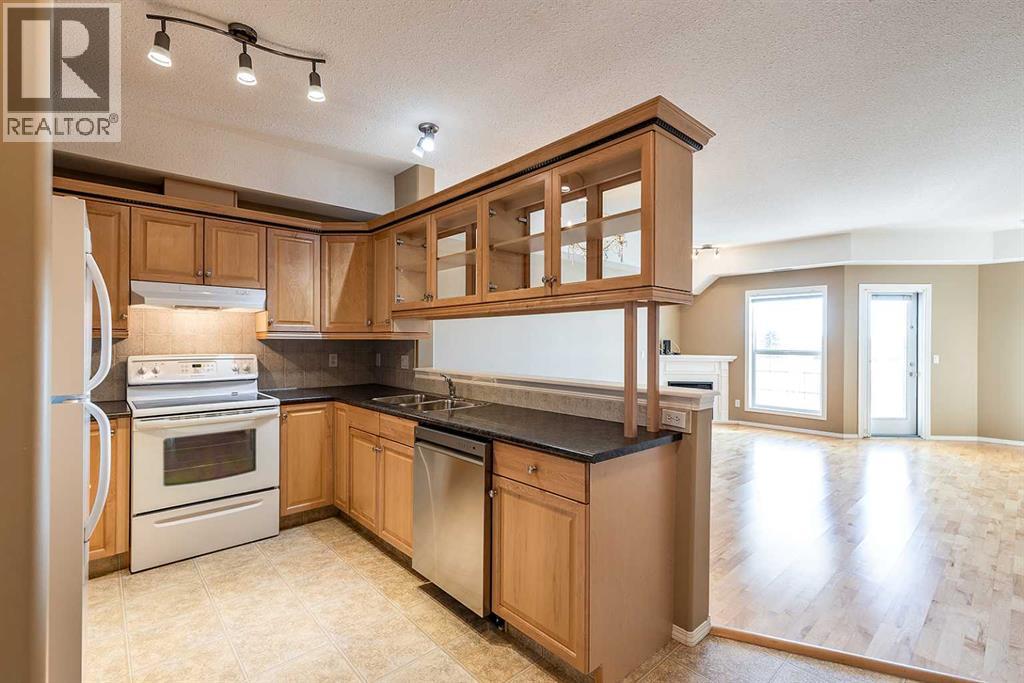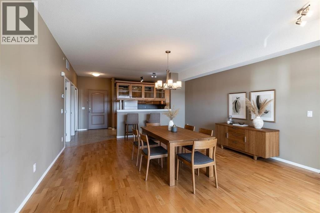 TOP FLOOR with gorgeous River View. This 1 bedroom PLUS DEN, has an Amazing location in phase 3 of River Ridge Estates, facing east toward downtown and the river. Enjoy shaded summer afternoons and bright cheerful, Sunfilled mornings. First time on market, this Pet-free, smoke-free condo has been owned by the same wonderful family since 2005. This condo has extra, custom cabinetry, that was added when the family purchased the condo from the builder. The kitchen has much more than meets the eye. Tall Pantry cupboard with pull out drawers, lazy Susans, deep storage drawers, and rare suspended showcase cabinetry with glass doors over the kitchen peninsula. The dishwasher is only 2 yrs old. The dining and living room has beautiful hardwood and a cozy electric fireplace. Enjoy the convenience of a secondary guest bathroom and in-suite laundry with a stackable washer dryer. This space has built-in wire racks for Linens and added pullout drawers under the bathroom cabinets. The Den has TONS OF STORAGE with built in cabinets, floor to ceiling. From the primary bedroom you will enjoy beautiful views, a 4 piece ensuite, and large closet with mirrored sliding doors. Underground heated parking (titled) along with an extra storage room are the cherry on top of this sweet piece of real estate. Residents of River Ridge Estates enjoy access to an exceptional range of amenities including an indoor saltwater pool, hot tub, steam room, fitness area, theatre, library with fireplace, games and entertainment spaces, a woodworking shop, car wash, and guest suites. A well-maintained home in a sought-after building, offering comfort, convenience, and lifestyle. Book your private showing today. (id:21083)