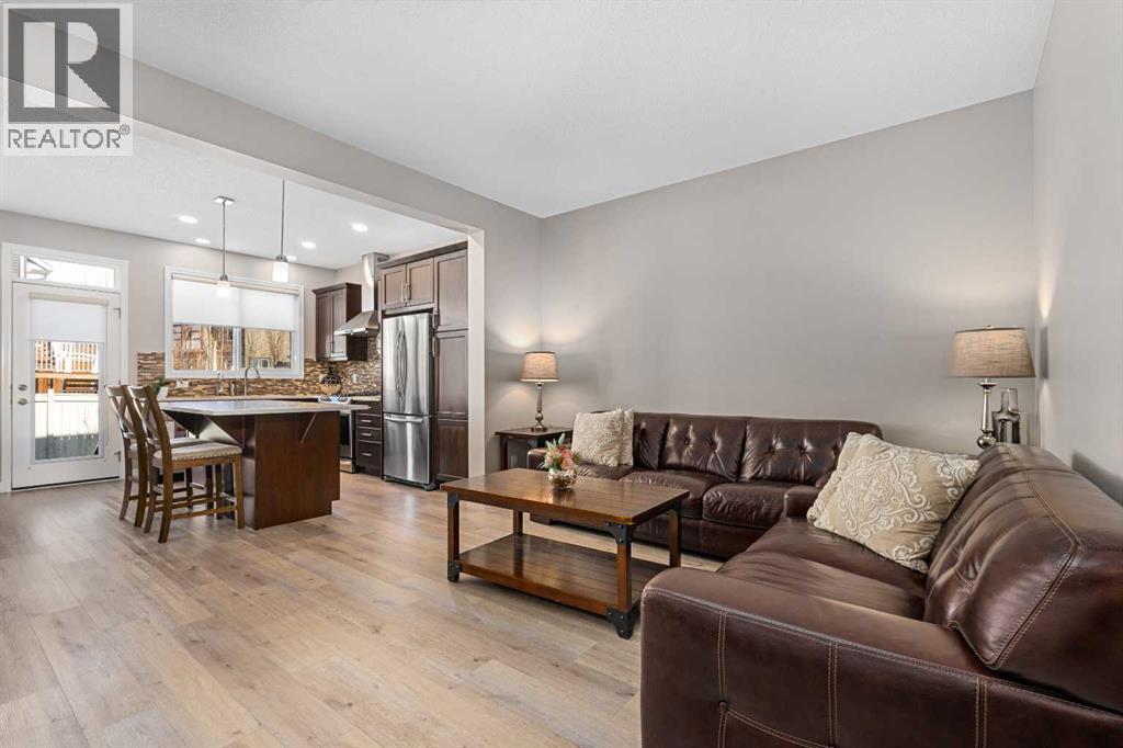 Nestled in the peaceful Kings Heights neighbourhood of Airdrie, this meticulously cared-for Jayman built half duplex offers the perfect blend of comfort and convenience with no condo fees. From the moment you step inside, you’re greeted by an abundance of natural light that enhances the home’s warm and inviting atmosphere. The spacious foyer provides quick access to the attached oversized single garage, complete with built-in shelving for added storage and year-round parking, while the oversized driveway comfortably accommodates two additional vehicles. Custom blinds are installed throughout the home, adding both style and privacy. At the heart of the property is a stunning kitchen featuring premium stainless steel appliances, sleek modern cabinetry, a timeless colour palette, a luxury gas range, and an island finished with upgraded quartz countertops. The kitchen flows seamlessly into the dining area and opens onto a generous deck and fully fenced backyard complete with fruit trees, garden space, and a convenient BBQ gas line hook-up, making outdoor entertaining effortless. The contemporary open-concept design allows you to remain connected with guests while preparing meals. Upstairs, the primary bedroom offers a spacious walk-in closet with premium built-ins — a feature extended to every closet in the home — along with a well-appointed ensuite bathroom. The upper level also includes a versatile bonus room, two additional bedrooms, a full main bathroom, a linen closet and effortless upstairs laundry, ensuring comfort and privacy for the whole family. The partially finished basement boasts a professionally set-up recreation room with discreet pot lighting and a built-in sound system, creating an ideal space for movie nights and gaming, while the bathroom has already been framed, ready for future completion. Additional mechanical upgrades include a hot water on-demand system, an 8-panel 4-kilowatt solar system and a water softener system, enhancing efficiency and eve ryday comfort. Situated in the heart of this established community, the home offers easy access to nearby bike paths, green spaces, picnic areas, schools, and convenient routes to Highway 1, CrossIron Mills, and Calgary — all without the delays of train crossings — making this an exceptional opportunity to secure a truly move-in-ready home in a sought-after location. Click the link to view the virtual tour! (id:21083)