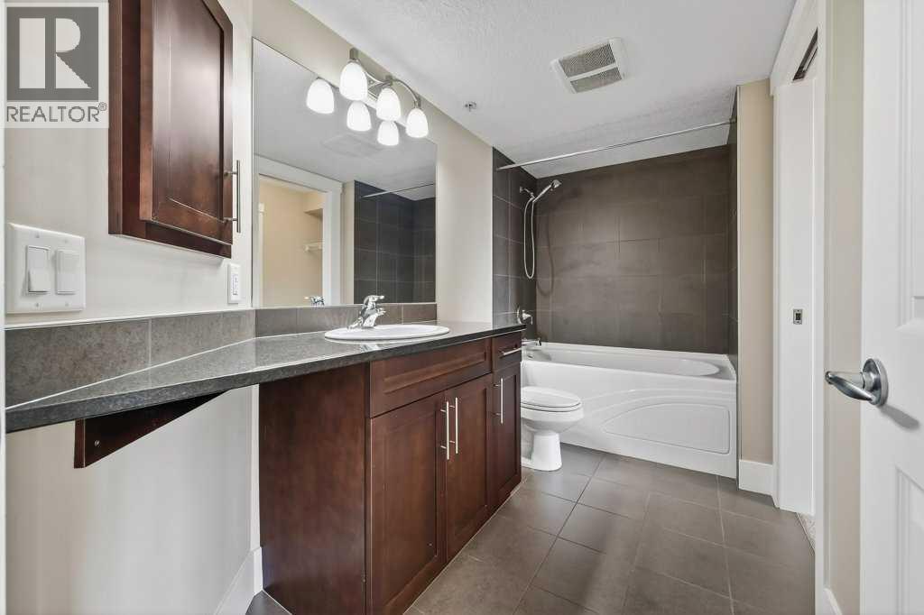 Top-floor living with stunning Rocky Mountain views in Rocky Ridge! Welcome to this beautifully maintained 1 bed + den condo at 500 Rocky Vista Gardens NW. Enjoy exceptional privacy, abundant natural light, and breathtaking west-facing views from your private balcony. The open layout features a spacious primary bedroom with walk-in closet and 4-piece ensuite (dual access), a versatile den perfect for a home office, and a modern kitchen with stainless steel appliances, quartz countertops, peninsula seating, and under-cabinet lighting. Underground parking and a storage locker are included, along with access to the building’s fitness centre and party room. Ideally located minutes to Crowchild Trail and Stoney Trail, the Tuscany LRT station, Crowfoot Crossing shopping, restaurants, schools, parks, and scenic pathways. Residents also enjoy access to the Rocky Ridge Ranch Homeowners Association, featuring a private lake, recreation facility, tennis courts, and year-round amenities. Top-floor privacy, mountain views, and unbeatable convenience... this is Rocky Ridge living at its best. (id:21083)