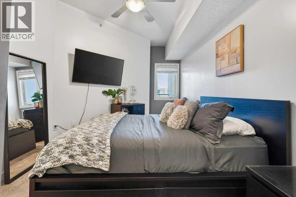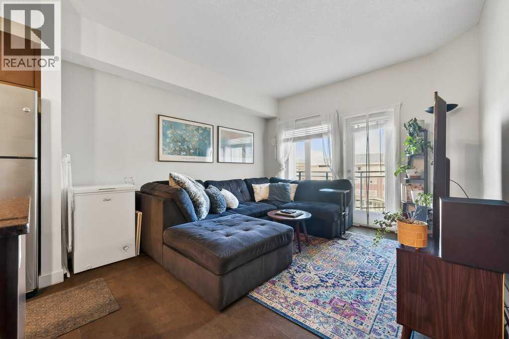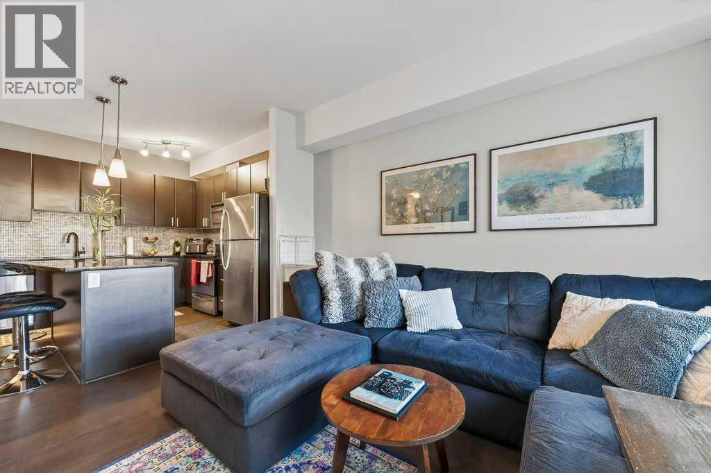 Welcome to Canvas at Millrise. This top-floor, courtyard-facing 1 bedroom, 1 bathroom unit offers over 600 sq ft of well-designed living space with 9-foot ceilings and a quiet setting away from the street. Ideally located close to the elevator with direct access to nearby pathways leading to shopping and restaurants. The functional layout features a welcoming entry with large front closet, a modern kitchen with an island topped with stone countertops, stainless steel appliances, and a built-in desk area perfect for working from home. The living room opens to a private balcony with a BBQ gas line overlooking the courtyard. The spacious bedroom includes a walk-through closet and 4-piece cheater ensuite accessible from both the bedroom and main living area. In-suite laundry adds convenience. This unit includes titled underground parking and an assigned storage locker. The well-managed, pet-friendly complex offers a fitness centre, recreation room, media room, bike storage, and visitor parking. Condo fees include heat and electricity. Steps to Millrise Plaza with Sobeys, Shoppers Drug Mart, Kinjo, Rockwell, and more, plus quick access to the C-Train and Macleod Trail, this is an excellent opportunity for first-time buyers, downsizers, or investors. (id:21083)