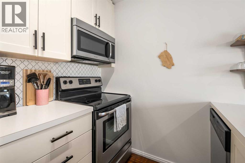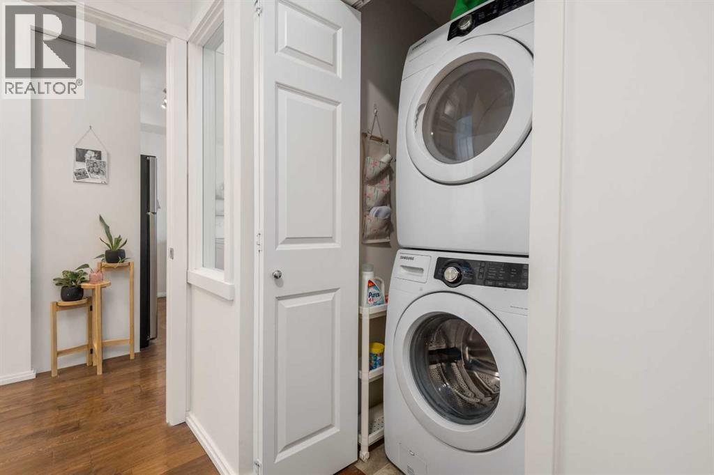 Welcome to 1403, 279 Copperpond Common SE – a beautifully updated two-bedroom, one-bathroom apartment in the desirable community of Copperfield. Offering 552 square feet of comfortable and contemporary living space with the low condo fee of $317.30. this condo is the perfect stylish, well kept, move-in-ready home. Upon entering, you'll immediately notice the fresh feel created by marble tile in the foyer, 9ft ceilings, premium engineered hardwood flooring, beautiful views and lighting. The open-concept design seamlessly connects the living, dining, and kitchen areas, providing an ideal space for entertaining and everyday meals. The kitchen features all stainless steel appliances, ample counter space, and abundant cabinetry. Adjacent to the kitchen, the dining area flows naturally into the spacious living room, bathed in natural light from large windows. The primary bedroom is spacious and shares the large NW facing windows. The second bedroom is equally spacious and versatile, perfect for a guest room, home office, or additional living space. The 4-piece bathroom is conveniently located next to the entrance and out of the way. The in-suite laundry adds an extra layer of convenience to your daily routine. Step outside onto the Northwest-facing balcony, where you'll find a gas hook-up perfect for BBQ enthusiasts, making it an ideal spot for outdoor dining and relaxation. Additionally, there is one titled parking surface stall and a storage locker in the parkade for even more convenience. Located just minutes from shopping, restaurants, public transportation, and many other amenities, with quick access to the South Health Campus, this condo offers both comfort and convenience in a prime location. (id:21083)