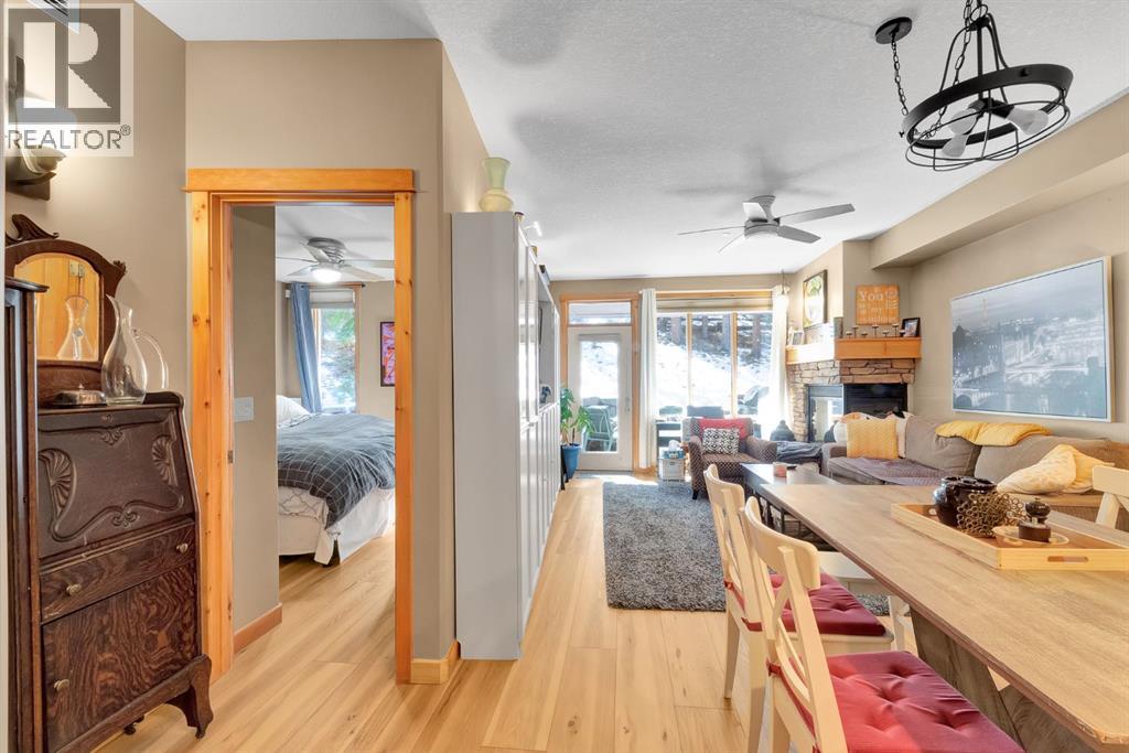 This 2 bed, 2 bath home in Canmore’s sought after Three Sisters community offers the perfect mix of comfort, function, and location. Inside, you’ll find exposed wood cabinetry, solid stone countertops, and matching wood trim, doors, and vanities that give the home a clean, mountain feel. The open layout includes a gas fireplace with exposed rock and a wooden mantle, plus loads of natural light and a primary suite with a 3 piece ensuite and walk in closet. Heated linoleum floors with in-floor radiant water heating keep things efficient and warm year round. Step outside to your private patio with a built in gas BBQ, great for winding down after a day in the mountains or entertaining friends and family. This unit comes with two heated, secured underground parking stalls and a large heated storage unit for all your gear. You're minutes to Stewart Creek Golf Course, downtown Canmore’s restaurants and shops, and right next to a network of hiking, biking, and walking trails. Banff National Park is just 15 minutes away, with four major ski resorts - Norquay, Sunshine, Nakiska, and Lake Louise, all within a 40 minute drive. A clean, well-kept home in a prime location - ready for full time living or a mountain escape. (id:21083)