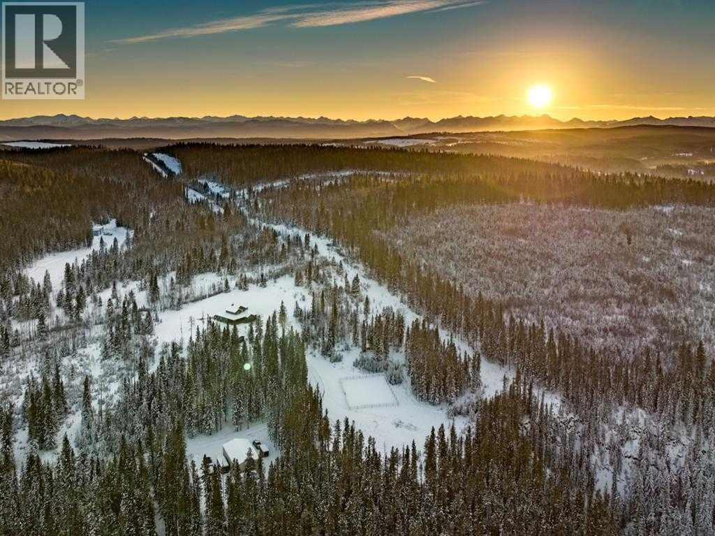 Privacy, prestige, and practicality come together in this exceptional 40.67-acre estate, ideally located just 7 km north of Highway 1A on Jamieson Road. From here you are only 25 minutes to Cochrane and approximately 40 minutes to downtown Canmore, offering the balance of peaceful country living with convenient access to nearby amenities. As you arrive via the private driveway, the sense of seclusion and exclusivity is immediate. Surrounded by a beautiful blend of treed landscape, open clearings, and natural terrain, the property offers both scenic enjoyment and practical space for animals, recreation, and hobbies. Aerial views reveal the thoughtful layout of the land, including functional areas for enclosures, extensive outbuildings, and the stunning residence at the heart of it all. At the center of the estate sits a beautifully crafted 2,500+ sq. ft. custom home built with exceptional attention to detail and quality materials throughout. Approaching the home, the partial wraparound porch and elegant Lux front door (new doors throughout) create a welcoming first impression that perfectly reflects the craftsmanship found inside. Upon entry, you are greeted by Acacia hardwood flooring, abundant natural light, and Hunter Douglas window coverings throughout. The living room is anchored by a stunning Rumford wood-burning fireplace, providing both warmth and architectural beauty while creating the perfect setting for cozy winter evenings. The well-appointed kitchen has been thoughtfully designed for both everyday living and entertaining, offering generous counter space, stainless steel appliances, a gas cooktop, extensive cabinetry, and excellent storage. The open layout connects seamlessly to the main living and dining areas, creating a warm and inviting gathering space. The main floor primary suite offers a comfortable retreat with a spacious ensuite (incredible 5 piece ensuite bath with soaker tub that must be seen!) and direct access through a Lux door to the west -facing deck, allowing you to enjoy evening sunsets and the surrounding natural beauty. Upstairs you will find three additional bedrooms. The upper bathroom features a double vanity and large shower, providing excellent functionality for family or guests. The fully finished basement expands the living space even further with in-floor heating throughout, a spacious media or recreation area. Comfort is enhanced with air conditioning and triple pane windows throughout. The fully finished, triple-car detached garage (completed in 2023) features in floor heating and insulated concrete forms. There is also another separate heated double car garage for all your storage and hobby needs, this building also boasts a Generac Guardian 22kw Natural gas generator (2023) capable of powering the entire property and added peace of mind. This property litteraly has it all , and With more to mention and no space here to do it, reach out directly and book your own private viewing! (id:21083)
