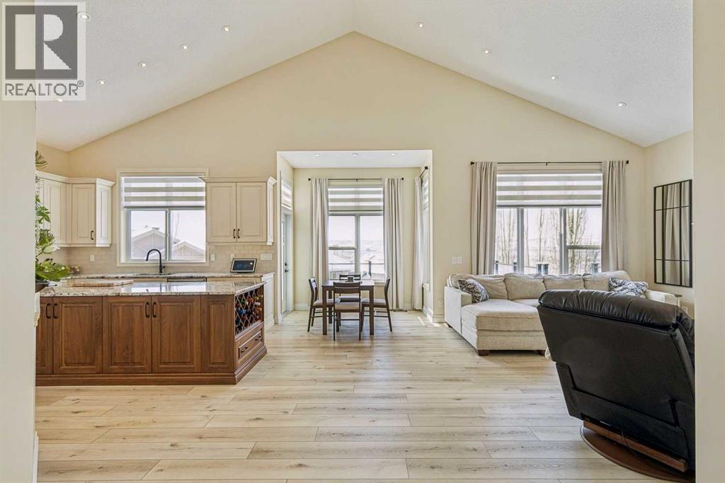 WOW. This stunning two-storey home in Hanson Ranch delivers a rare combination of breathtaking views, extensive upgrades, and a one-of-a-kind setting on a large pie-shaped lot. From the moment you arrive, the pride of ownership is unmistakable. The exterior has been completely refreshed with a rubber-coated driveway, new roof, air conditioning, freshly painted stucco, and a TimberTech composite deck featuring Kichler hardwired lighting and convenient gas hookups on both the upper and lower levels. Stairs lead down to a beautifully landscaped backyard complete with stone patios and retaining walls.Step inside and prepare to be impressed. The main floor showcases new vinyl plank flooring and fresh paint throughout, creating a bright and modern feel. A thoughtfully designed layout offers a spacious home office, formal dining area, and an incredible custom kitchen from Legacy that truly anchors the home. Featuring a large island, two-tone cabinetry with soft-close drawers and doors, gas range, custom hood fan, and a generous pantry, this kitchen is built for both everyday living and entertaining. A Kinetico water softener adds comfort and quality throughout the home. The adjacent living room impresses with soaring 18-foot vaulted ceilings and flows seamlessly to the back deck, where you can take in the incredible elevated views.Upstairs, the primary retreat offers both space and comfort, complete with a walk-in closet and a well-appointed 5-piece ensuite. Two additional bedrooms and a full 4-piece bathroom provide plenty of room for family or guests.The fully finished walkout basement expands your living space with a massive recreation area, wet bar with full sized refrigerator, fourth bedroom, and another full bathroom—perfect for entertaining or multi-generational living. Step directly outside to your private, beautifully landscaped yard, an ideal setting for relaxing or hosting.Extensively updated, ideally located, and truly unique—this is a rare opportunity to own a standout home in one of NW Calgary’s most desirable communities. (id:21083)