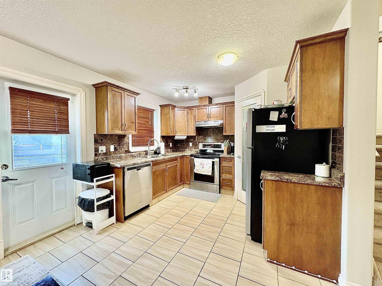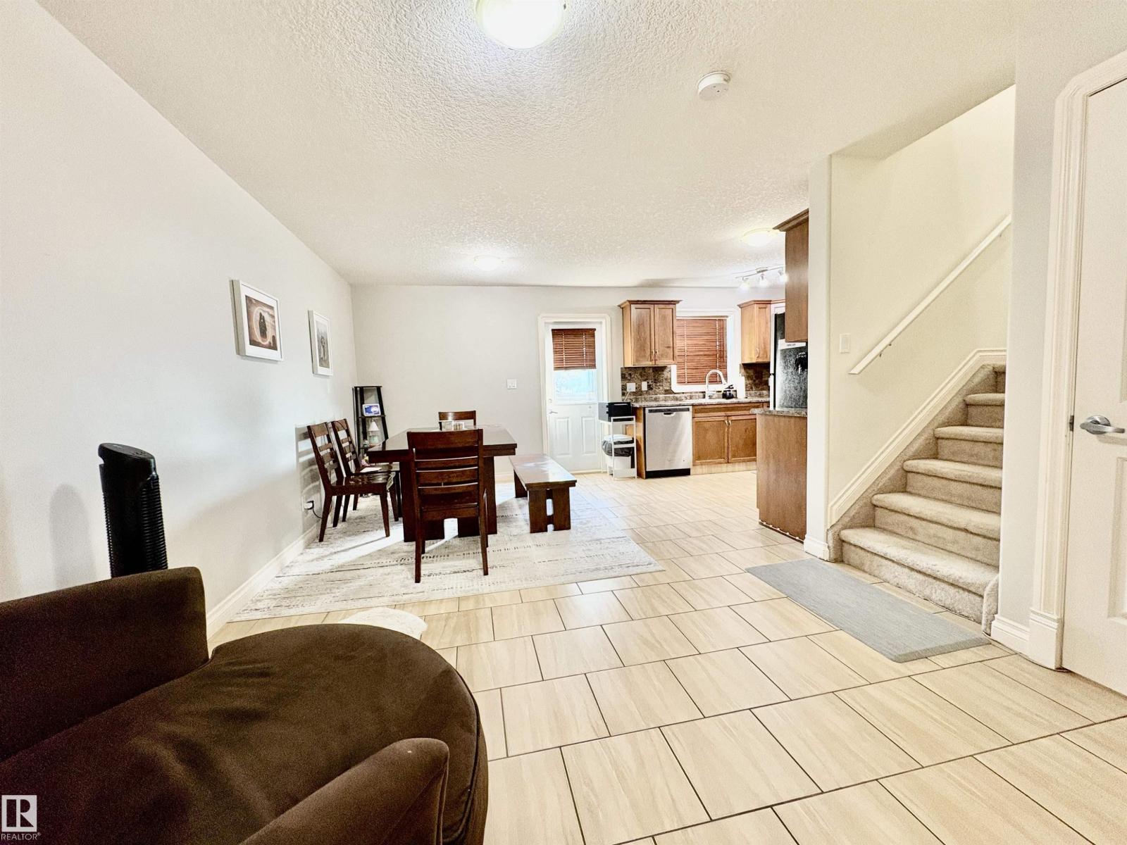 Welcome to this beautiful townhome in High Park with no monthly condo fees! Offering rare three-car parking (attached garage, front driveway, and an extra stall off the side), this home features elegant touches such as rounded high-end door frames, tile flooring throughout the main level, and a modern kitchen with walnut shaker cabinets, porcelain backsplash, and stainless steel appliances. The open-concept dining and living area leads to a private patio with no backyard to maintain—no lawnmowing required! Upstairs you’ll find a spacious primary suite with walk-in closet and full ensuite, plus two additional bedrooms and another full bath. The finished basement adds a large family room, laundry, and storage. All of this in an unbeatable location close to parks, schools, shopping, restaurants, Downtown, and the River Valley! (id:21083)
