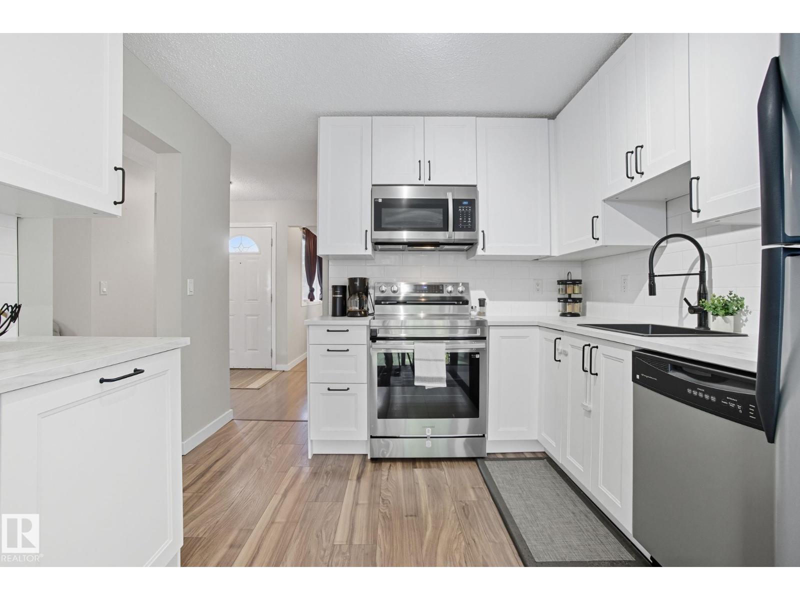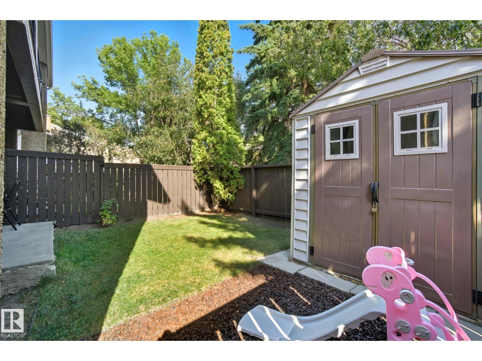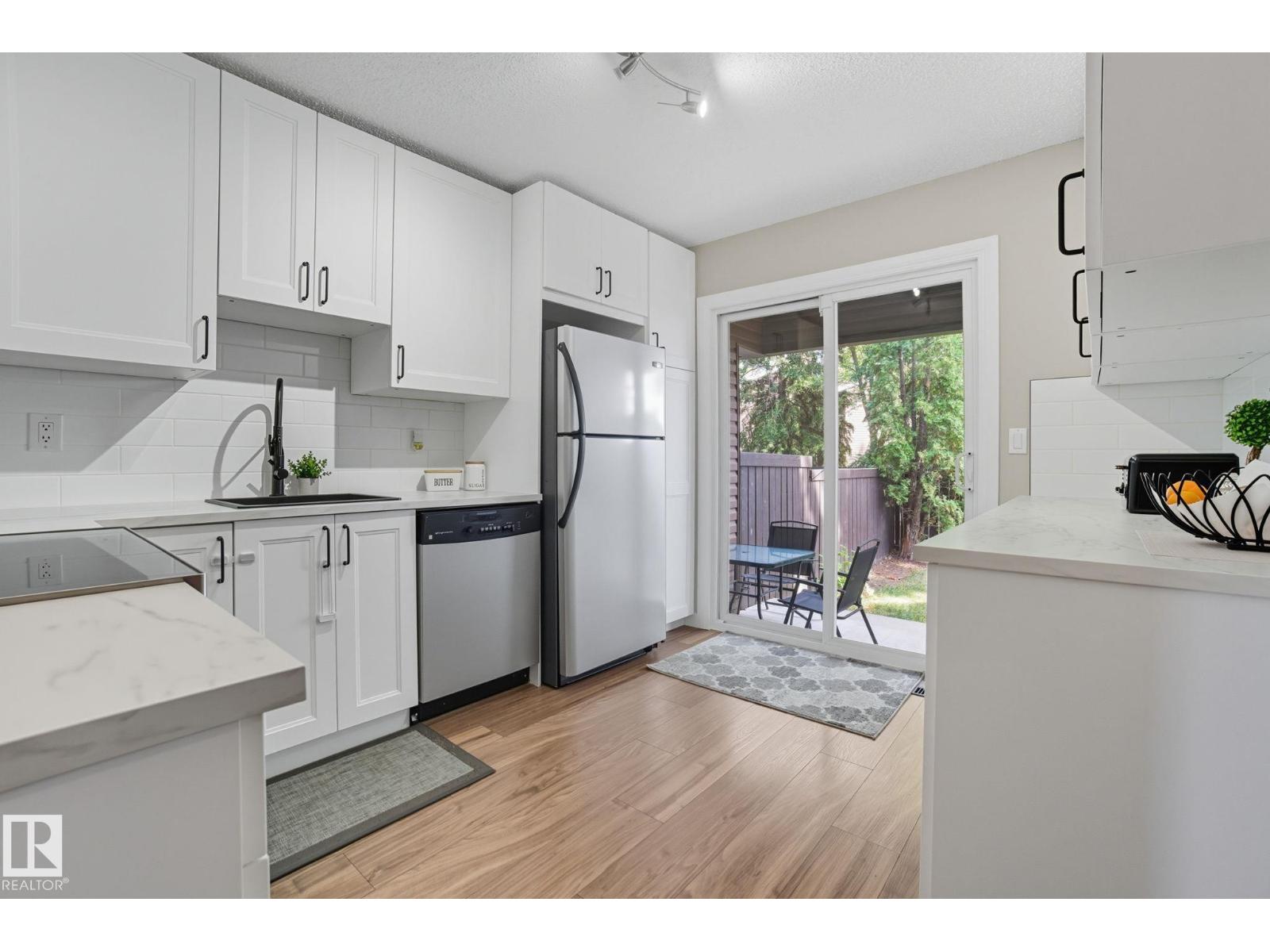 FULLY UPGRADED Corner Townhouse! A MUST-SEE! Forget ordinary—this stunning 3-bedroom corner unit in Parklane West is an absolute SHOWSTOPPER! Step inside to discover a CHEF'S DREAM KITCHEN featuring gorgeous custom white cabinetry with genius hidden drawers, a massive pull-out pantry, stunning backsplash, and sleek stainless steel appliances. The open main floor is perfect for entertaining, with a sun-filled formal dining area and a cozy living room centered around a warm fireplace—all flowing together with beautiful laminate flooring!Head upstairs to your private retreat… The MASTER BEDROOM includes its own peaceful patio—perfect for morning coffee! Two additional bedrooms and a sparkling full bath complete this level.But wait—there’s MORE! The partially finished basement offers bonus living space, a brand new furnace and a newer hot water tank. Love outdoor living? Large slide windows open directly to your very own PRIVATE BACKYARD... Plus, enjoy the convenience of of a covered carport! Welcome HOME !!! (id:21083)