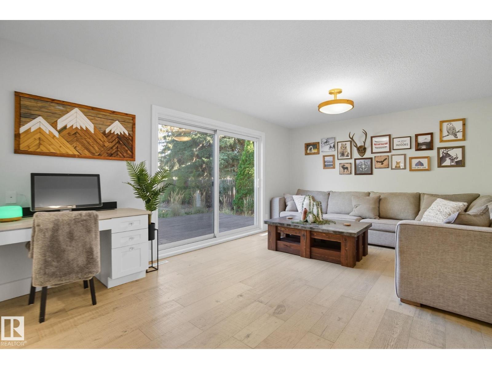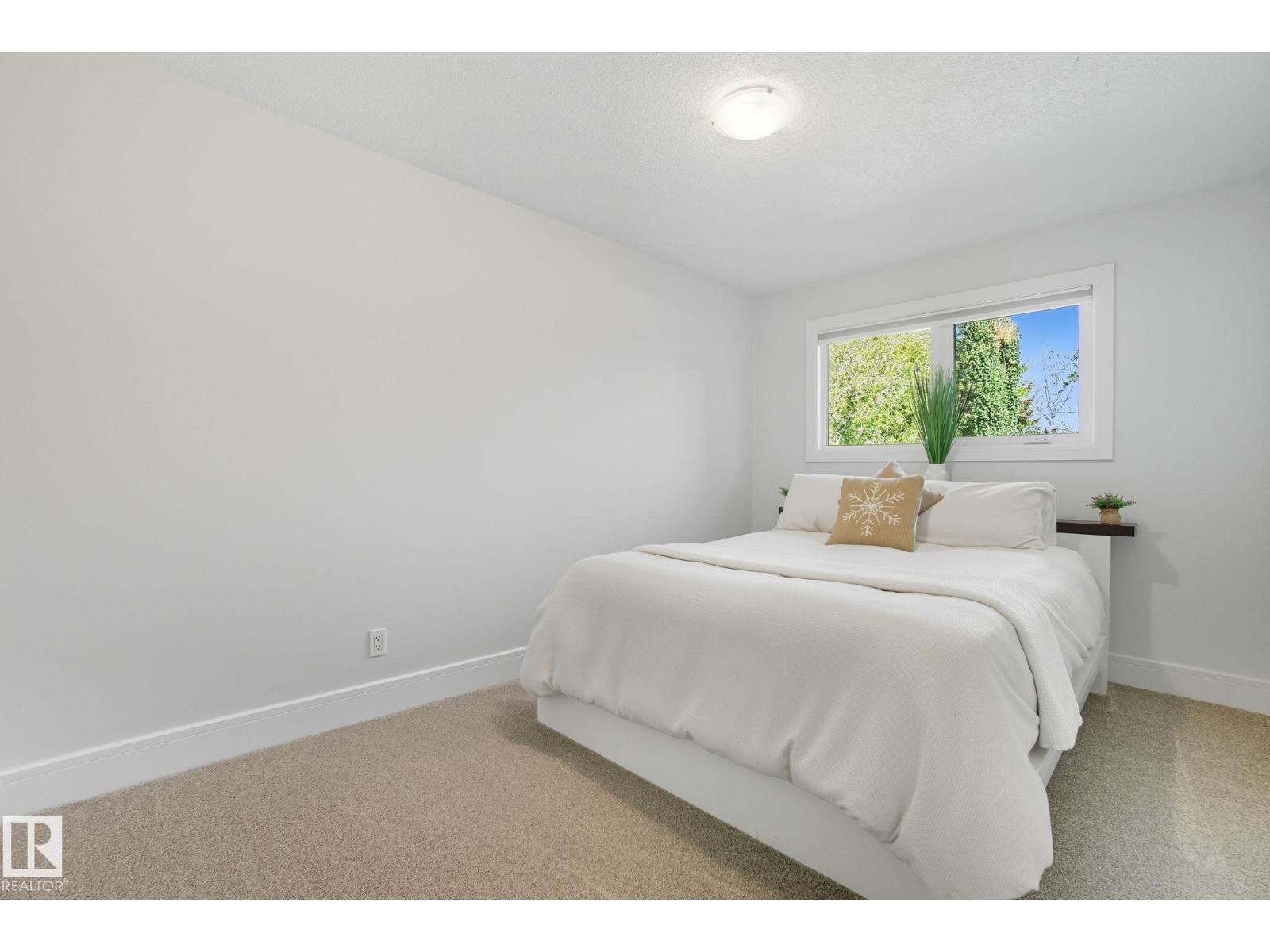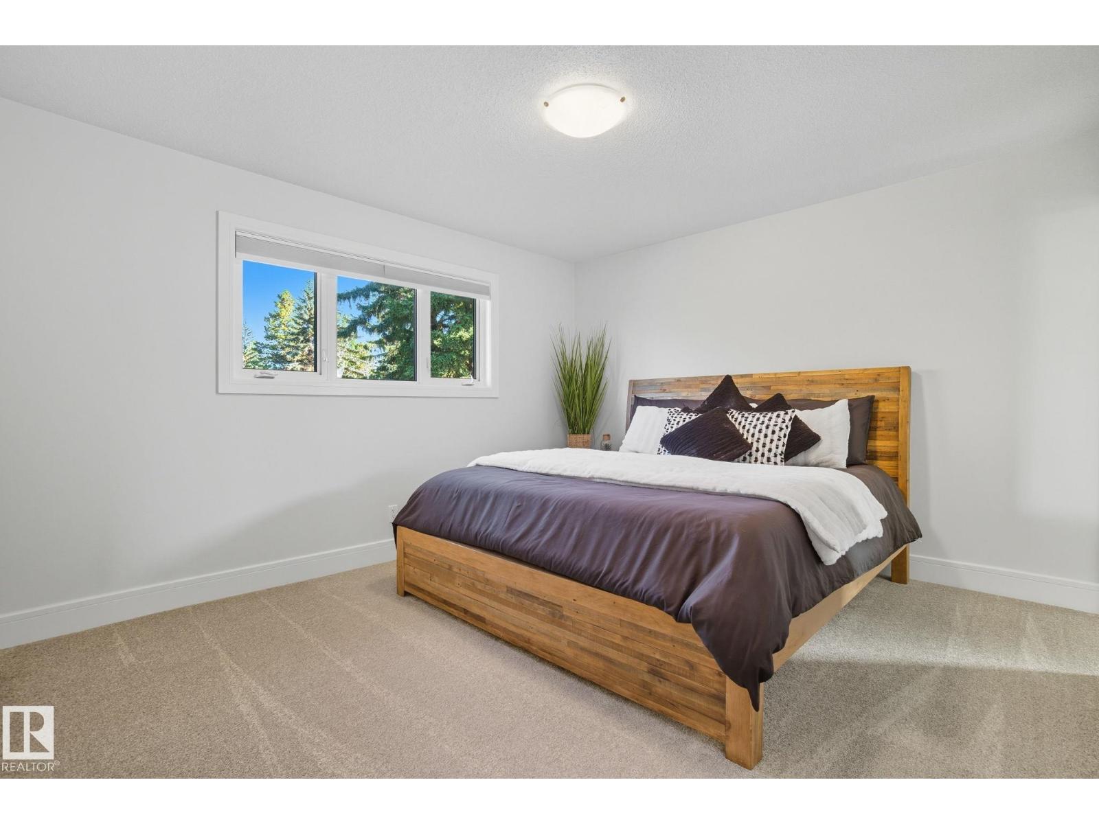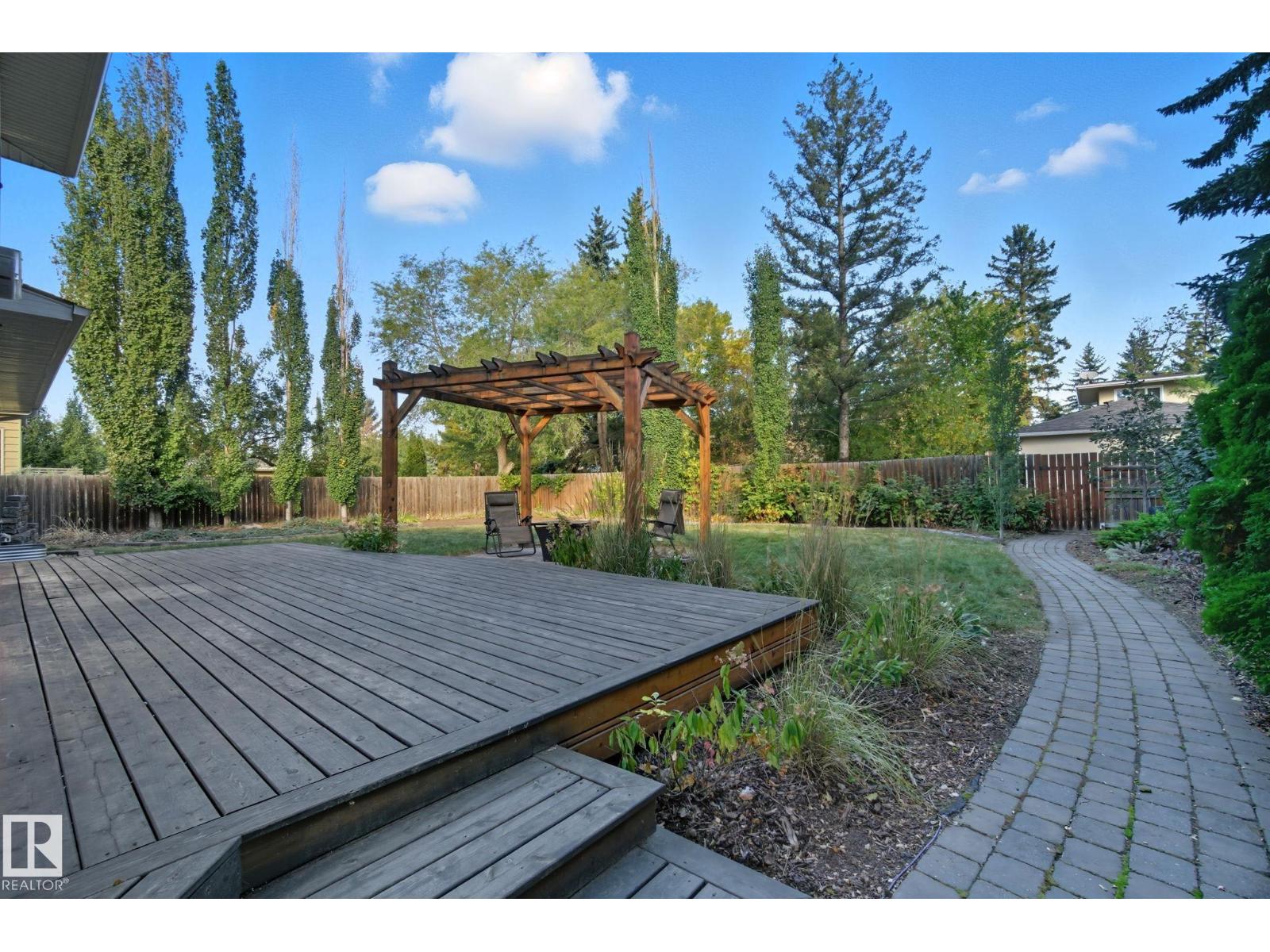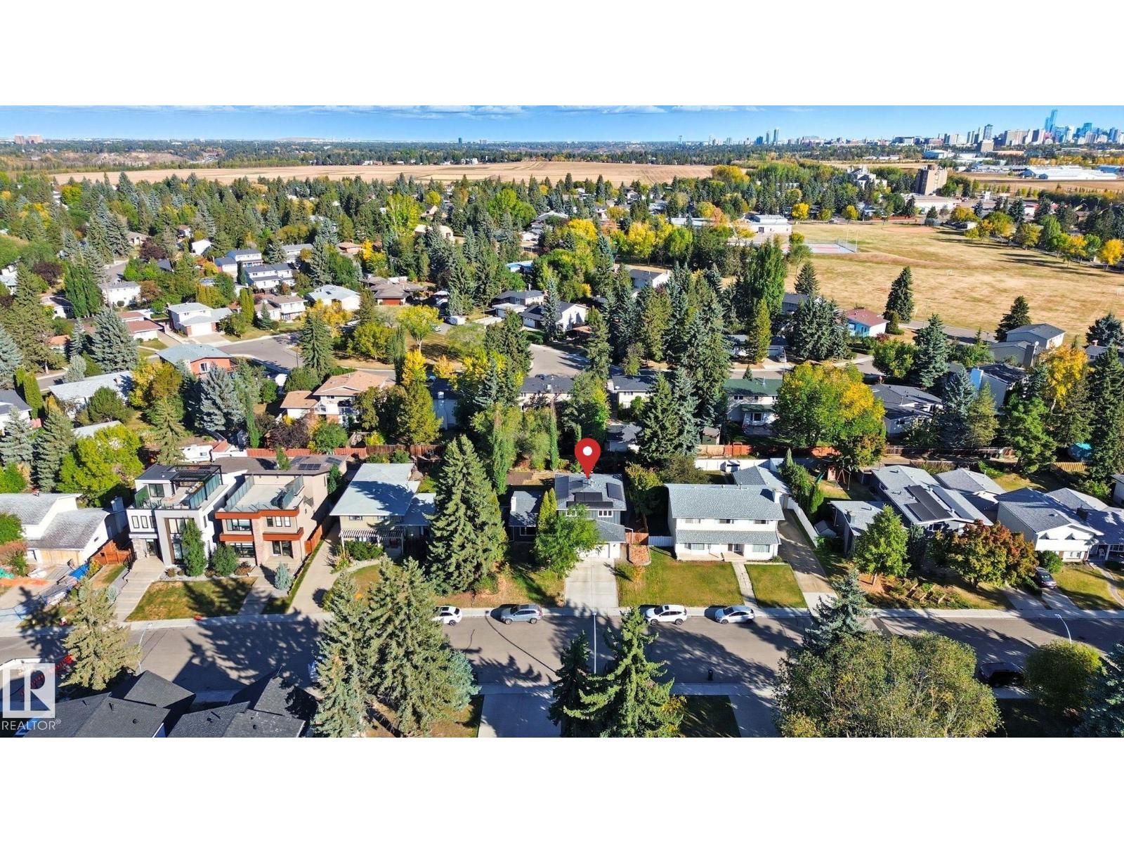 Solar-powered and fully renovated, perfectly positioned in one of Edmonton’s most desirable communities with Whitemud Ravine views right outside your front door. Paid-in-full solar panels efficiently run the heat pump and central A/C, plus a backup furnace, keeping comfort cost-effective year-round. Inside, modern updates blend with timeless style. The bright kitchen offers white cabinetry, quartz countertops, stainless steel appliances, and a large peninsula with seating, opening to the dining area. A wood-burning fireplace anchors the living room, while the family room leads to a private, fully fenced spacious backyard with deck and mature trees. Upstairs is a rare find with 4 generous sized bedrooms, including a primary suite and full ensuite. The finished basement adds a large rec room, bedroom, full bath, and storage. Additional features include main floor laundry, Hardie board exterior, new upstairs carpet, alley access with potential for a garden suite. (id:21083)