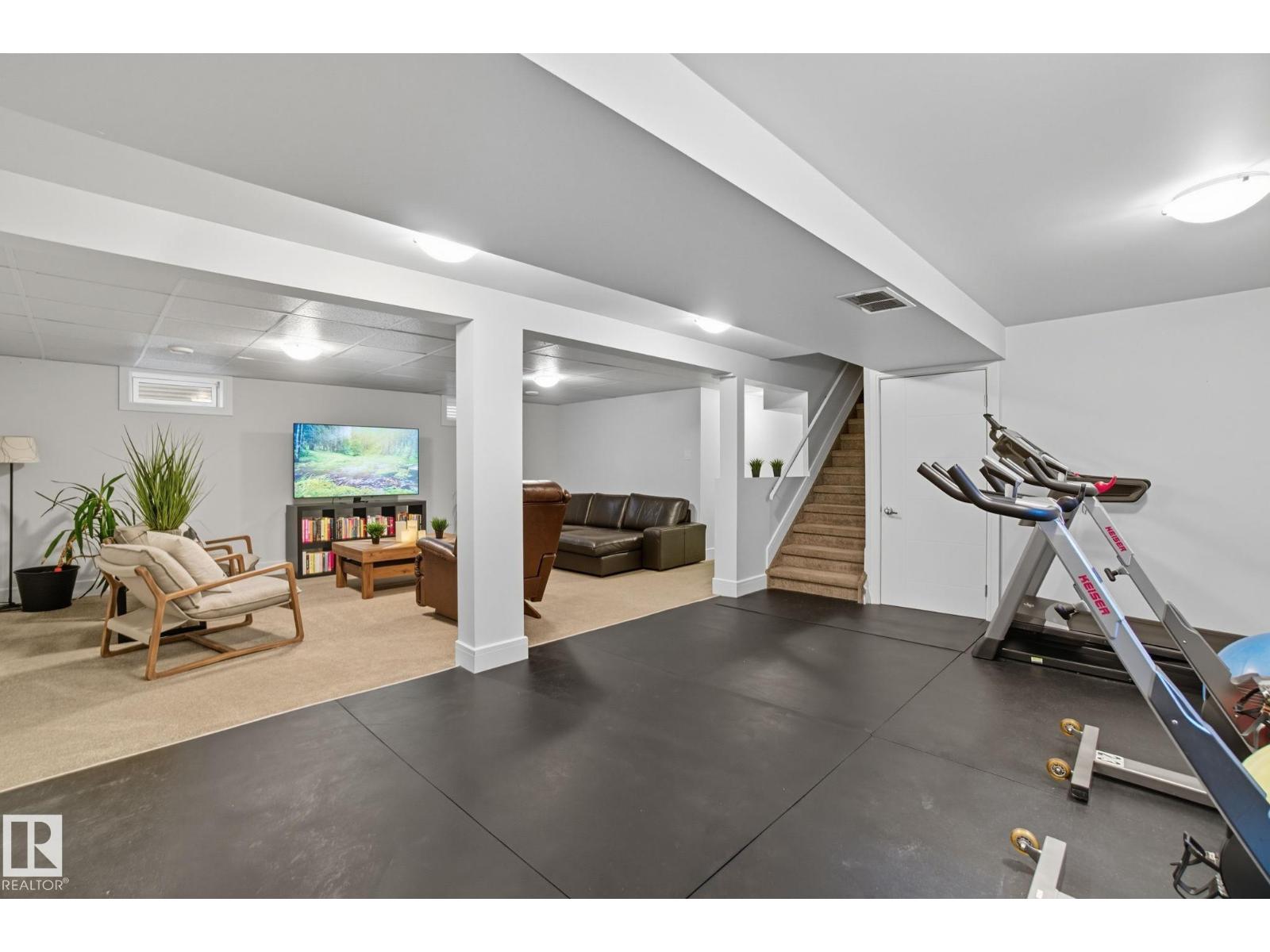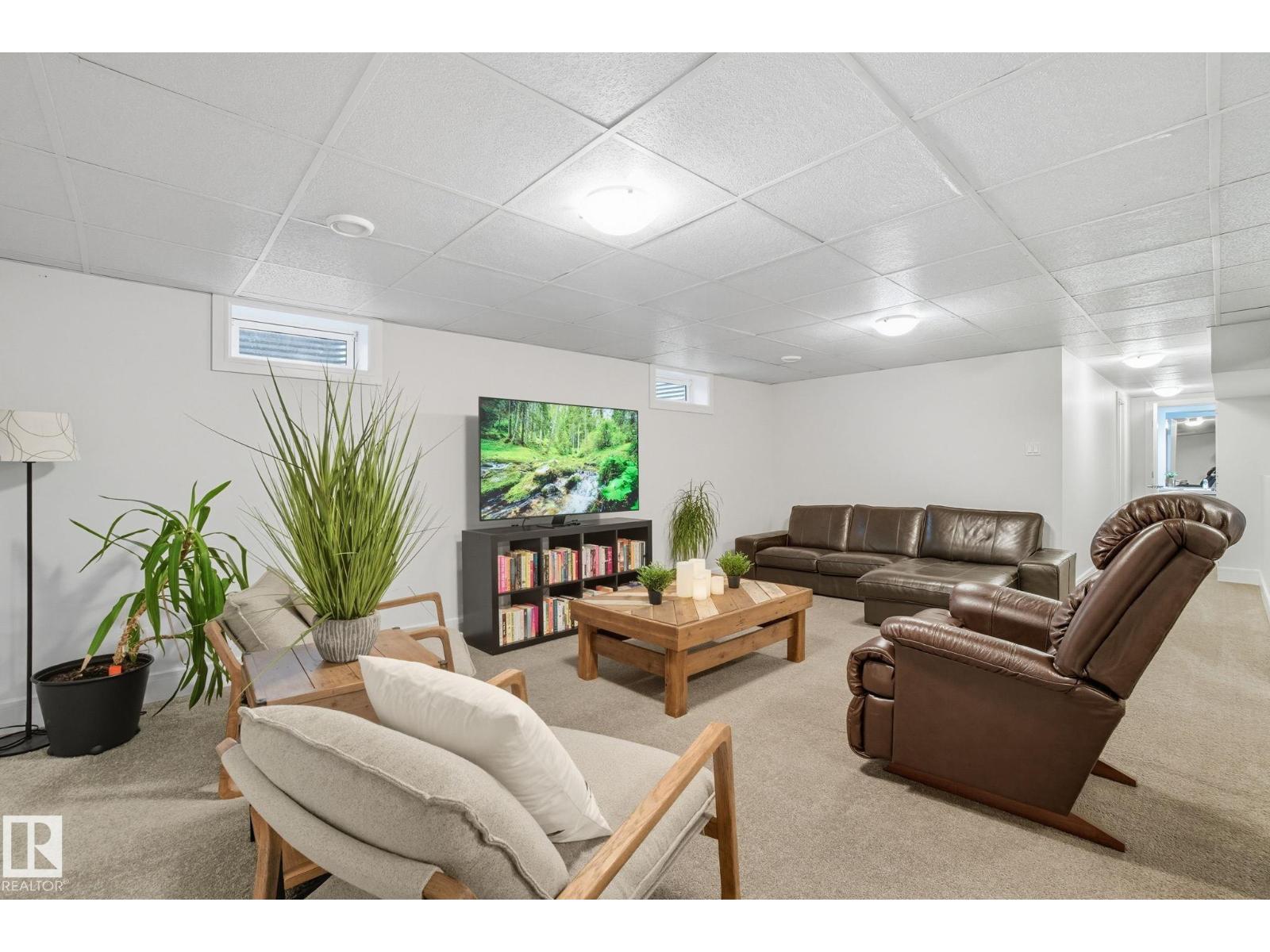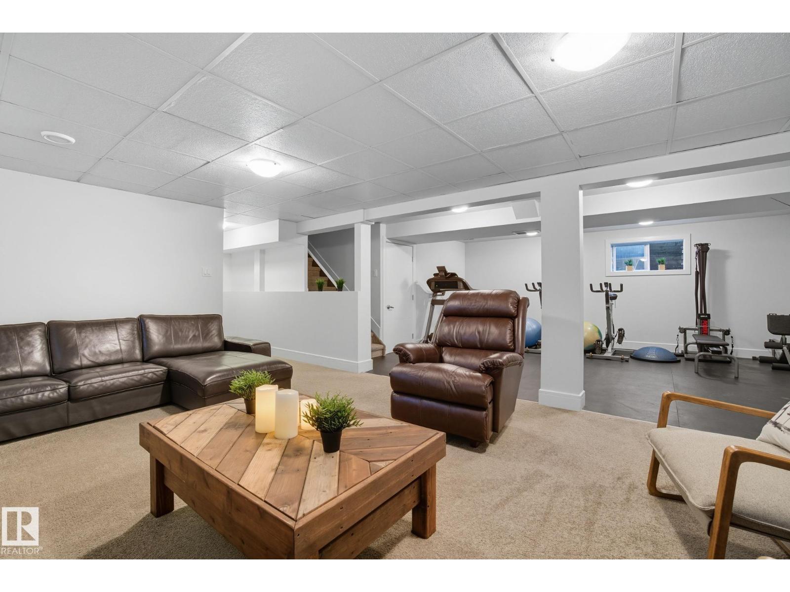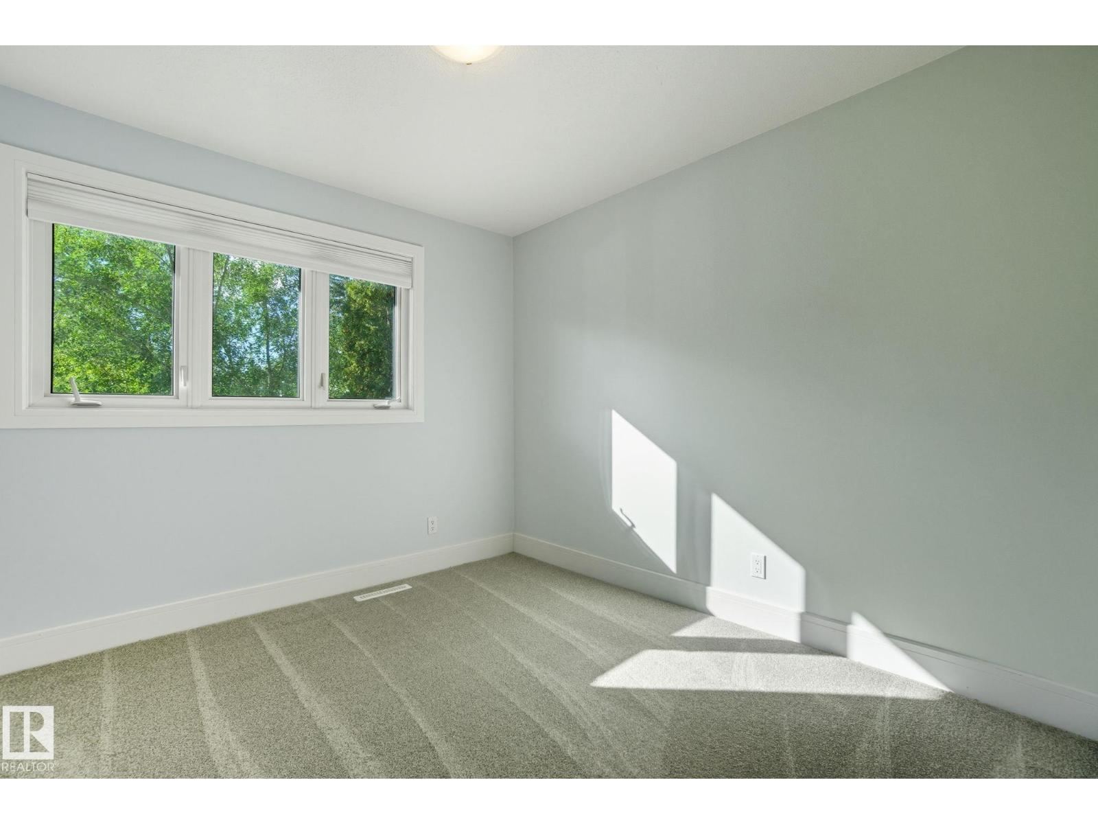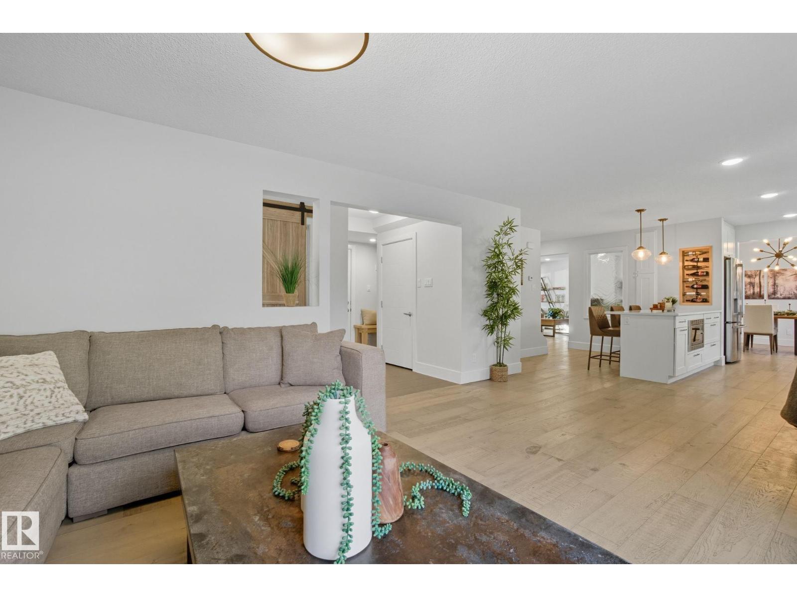 Solar-powered and fully renovated, perfectly positioned in one of Edmonton’s most desirable communities with Whitemud Ravine views right outside your front door. Paid-in-full solar panels efficiently run the heat pump and central A/C, plus a backup furnace, keeping comfort cost-effective year-round. Inside, modern updates blend with timeless style. The bright kitchen offers white cabinetry, quartz countertops, stainless steel appliances, and a large peninsula with seating, opening to the dining area. A wood-burning fireplace anchors the living room, while the family room leads to a private, fully fenced spacious backyard with deck and mature trees. Upstairs is a rare find with 4 generous sized bedrooms, including a primary suite and full ensuite. The finished basement adds a large rec room, bedroom, full bath, and storage. Additional features include main floor laundry, Hardie board exterior, new upstairs carpet, alley access with potential for a garden suite. (id:21083)