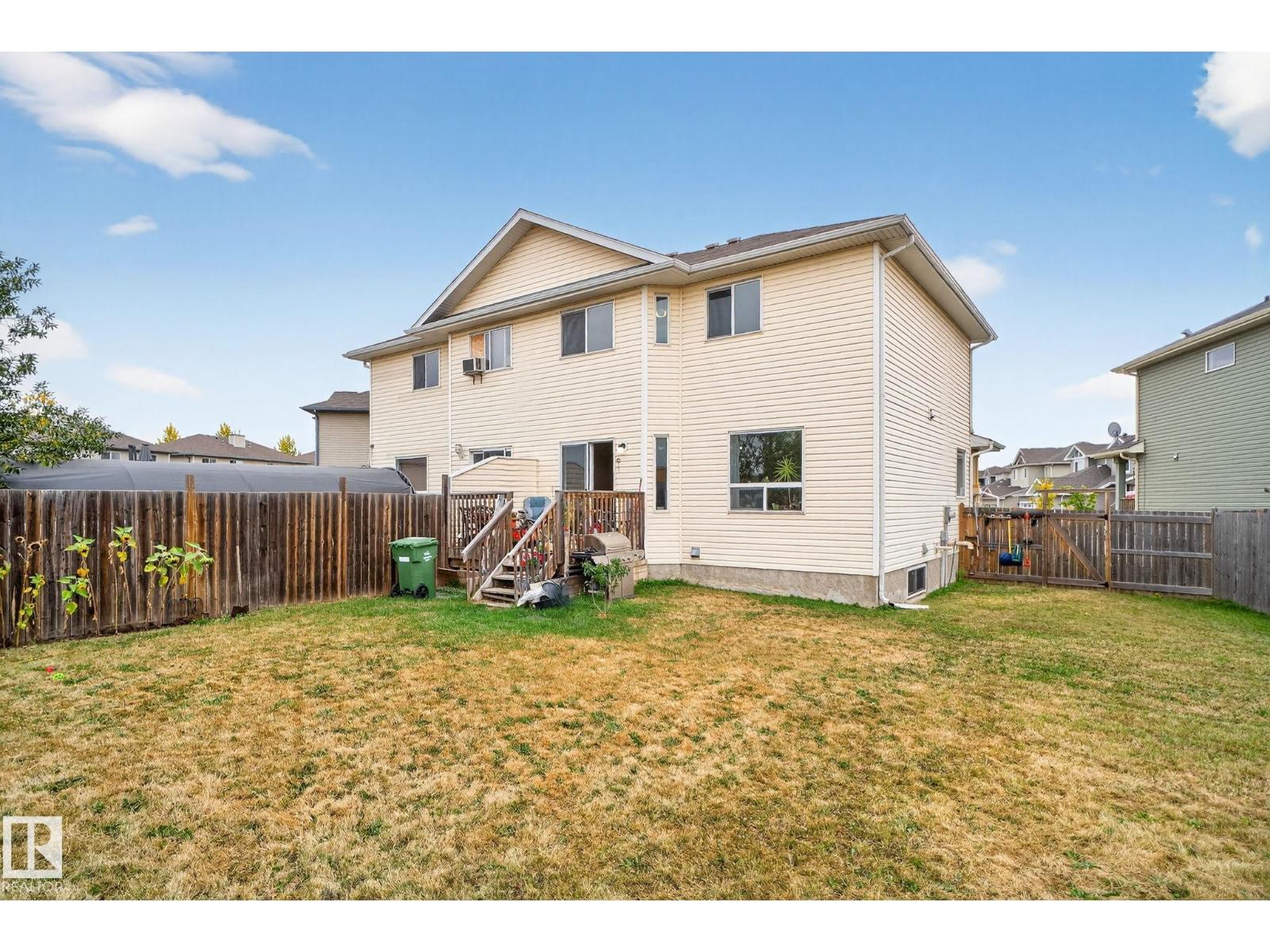 Bright and cheerful half duplex sitting on a massive lot in Tribute with no back neighbors. The property is ideal if you have pets or kids and comes fully fenced with a deck, toboggan hill and a west facing yard! The main level is spacious complete with all hard surface flooring and provides great functional spaces for living and cooking. Upstairs the home offers 3 good sized bedrooms including a 4pc bathroom. The primary suite comes complete with a walk-in closet and 3pc ensuite. Unfinished basement is excellent for storage, and more kid play space. Front drive with a double attached garage to top it all off for this property’s features. Close to schools, parks, shopping and EIA. (id:21083)