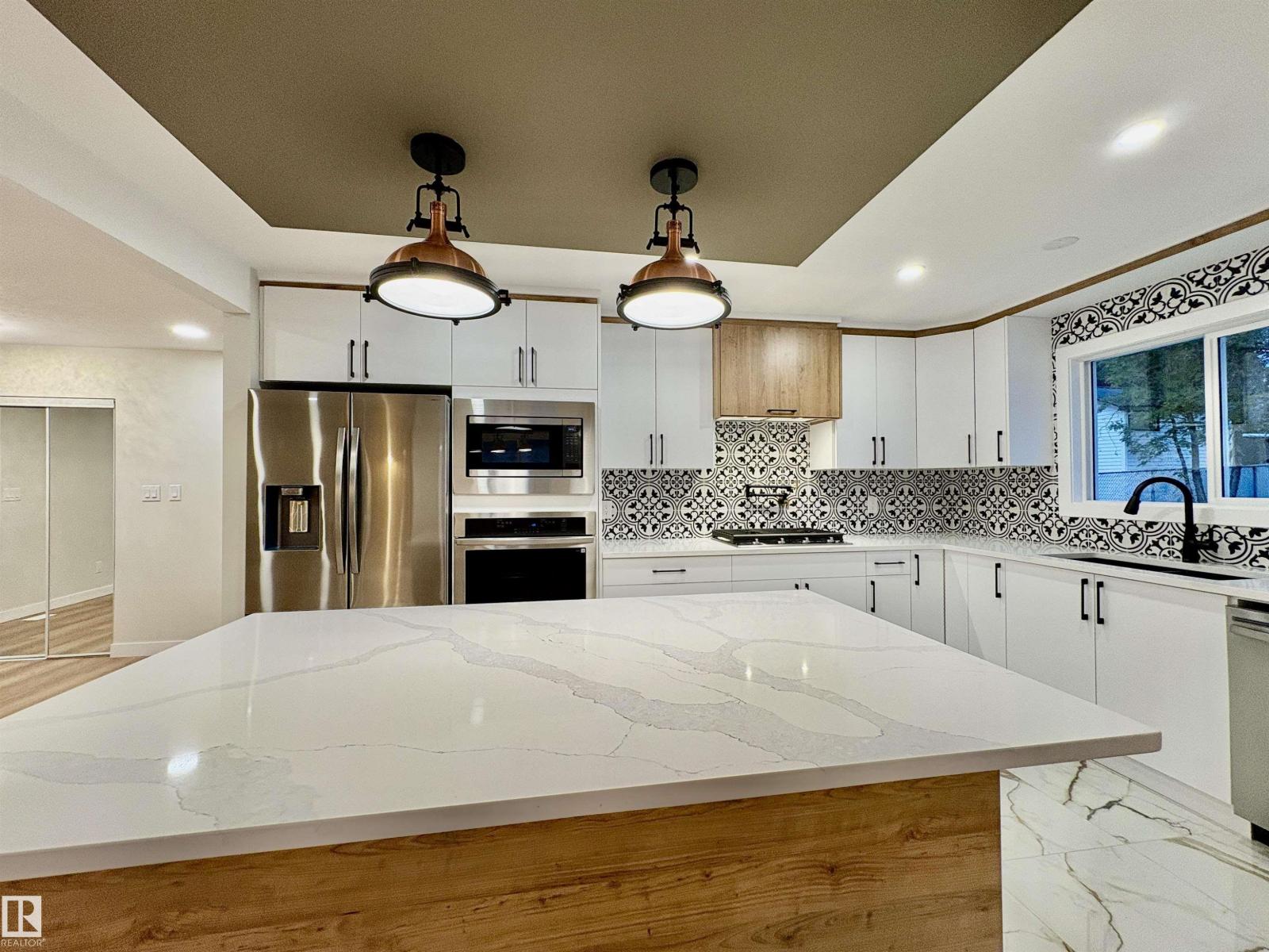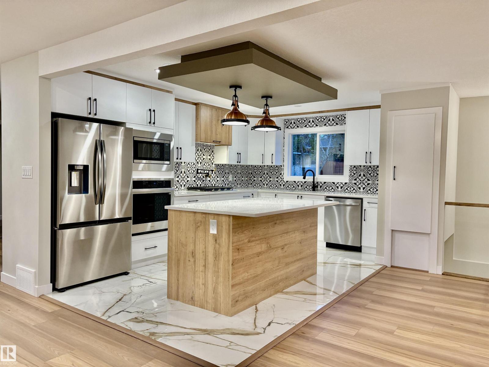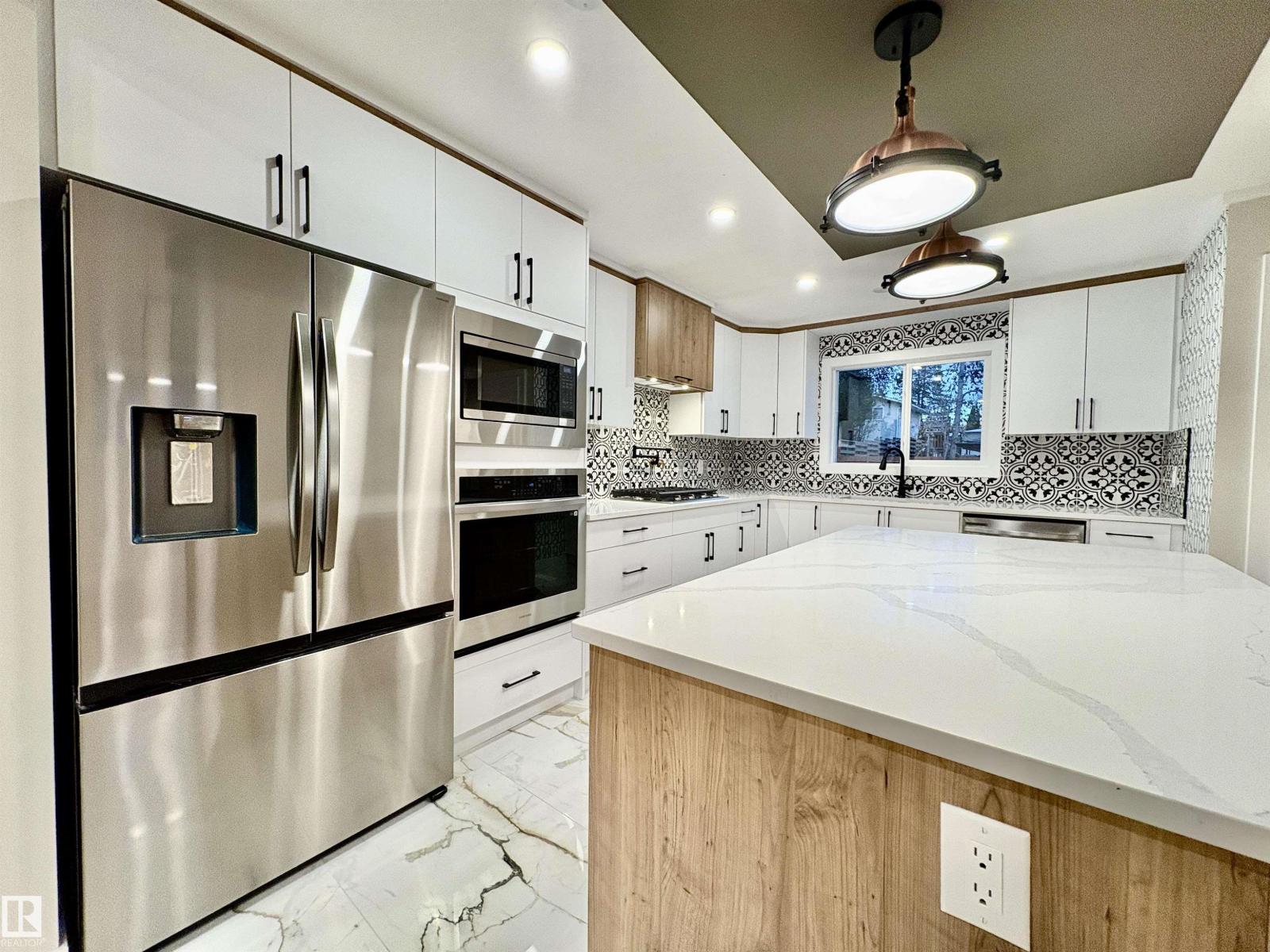 Welcome to this fully RENOVATED 4Bed - 3Bath bungalow in desirable Glen Allan. This move-in-ready home offers an open-concept layout with a stunning chef's kitchen featuring quartz countertops, ALL BRAND NEW appliances, GAS COOKTOP with pot filler. The FULLY FINISHED basement is built for entertaining, complete with a custom wet bar, and built-in home theatre speakers! Recent upgrades include NEW WINDOWS, siding, ON DEMAND HOT WATER, sump pump, new ROOF SHINGLES on both the home and detached garage which comes complete with a new door and garage opener. Outside features NEW CONCRETE on driveway, walkways, patio and a, fully landscaped front and backyard. Located close to schools, parks, trails, and all amenities, this home offers the perfect blend of comfort and convenience in one of Sherwood Park’s most established communities. (id:21083)