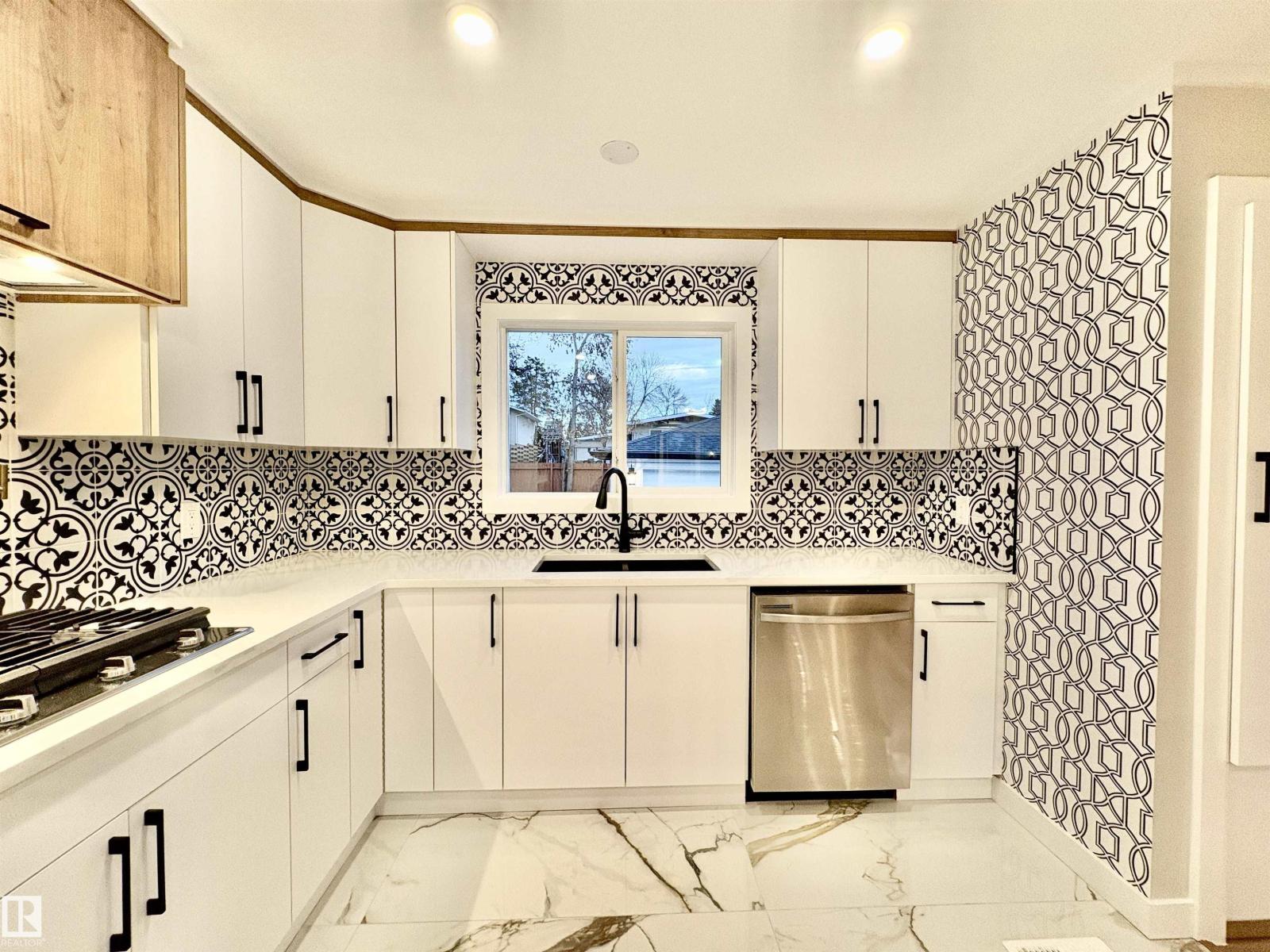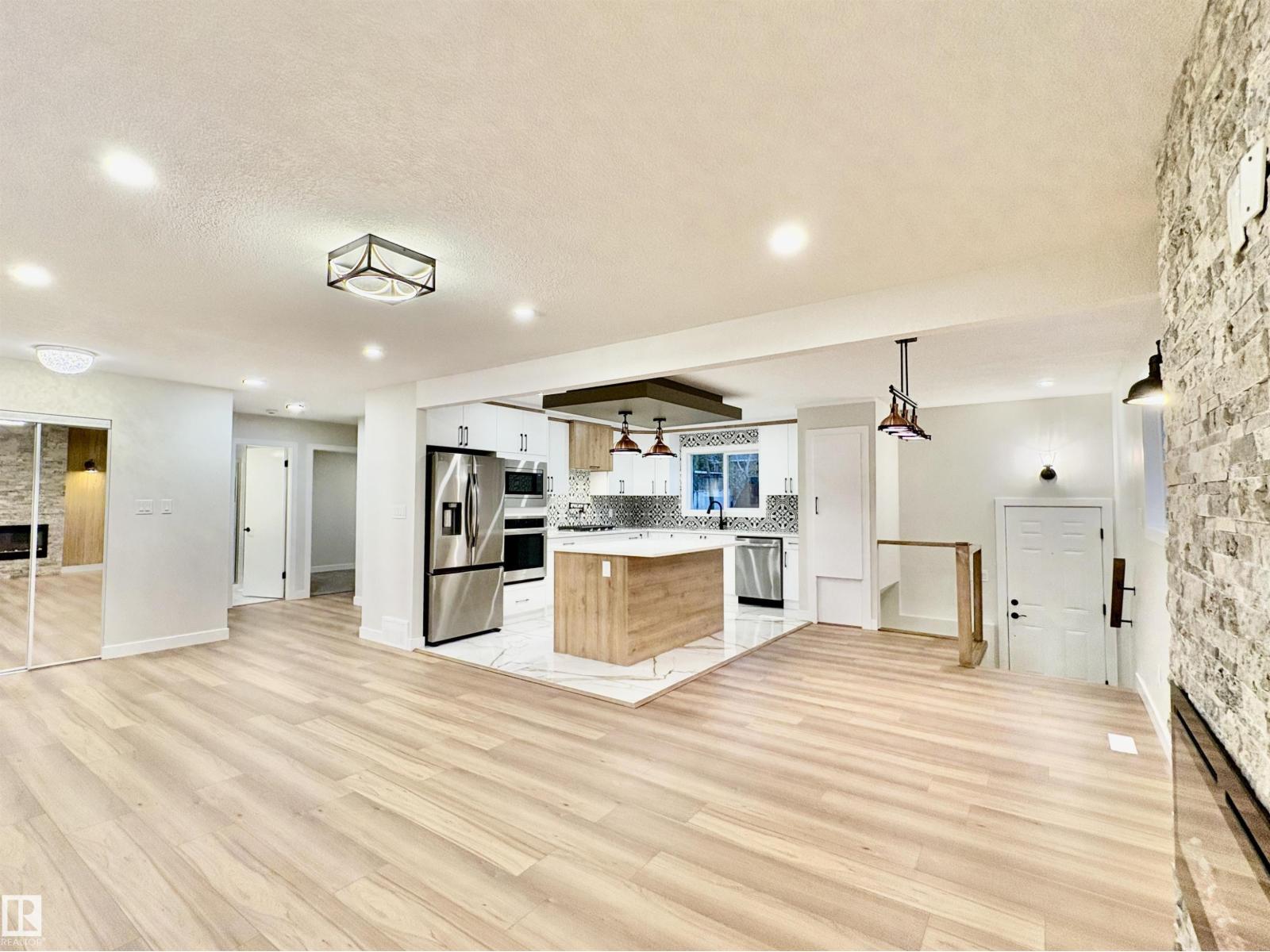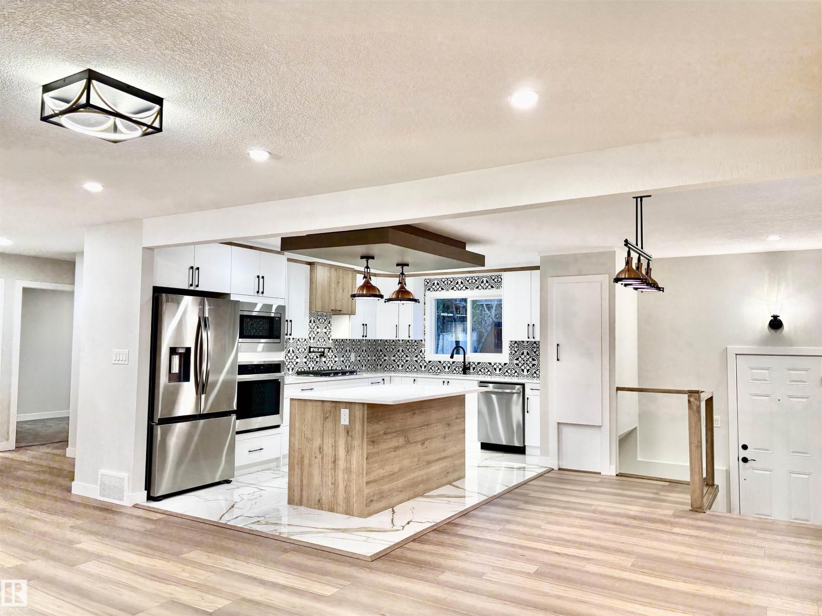 Welcome to this fully RENOVATED 4Bed - 3Bath bungalow in desirable Glen Allan. This move-in-ready home offers an open-concept layout with a stunning chef's kitchen featuring quartz countertops, ALL BRAND NEW appliances, GAS COOKTOP with pot filler. The FULLY FINISHED basement is built for entertaining, complete with a custom wet bar, and built-in home theatre speakers! Recent upgrades include NEW WINDOWS, siding, ON DEMAND HOT WATER, sump pump, new ROOF SHINGLES on both the home and detached garage which comes complete with a new door and garage opener. Outside features NEW CONCRETE on driveway, walkways, patio and a, fully landscaped front and backyard. Located close to schools, parks, trails, and all amenities, this home offers the perfect blend of comfort and convenience in one of Sherwood Park’s most established communities. (id:21083)