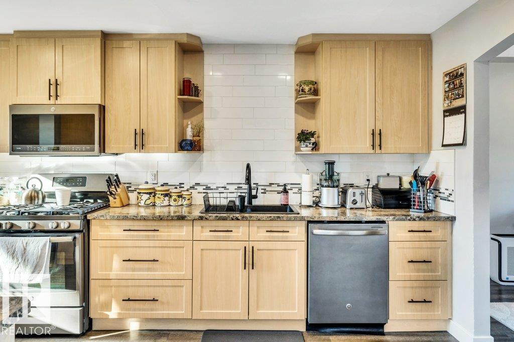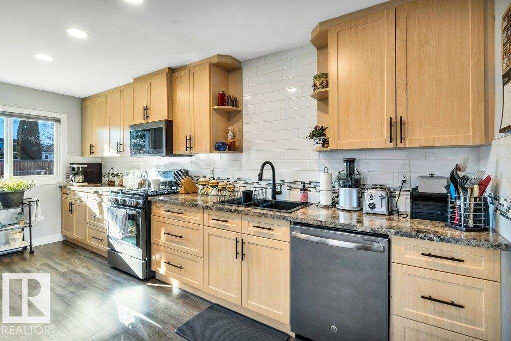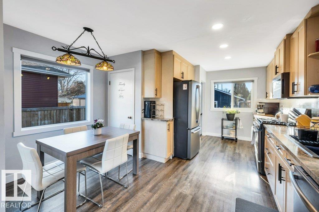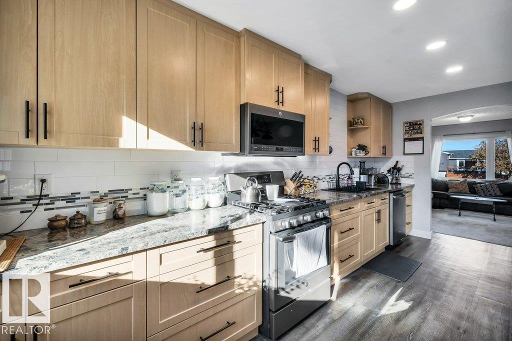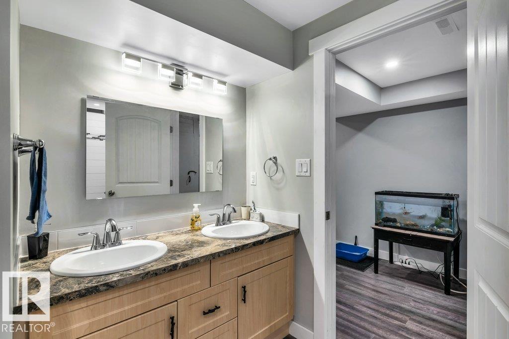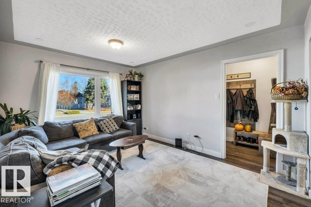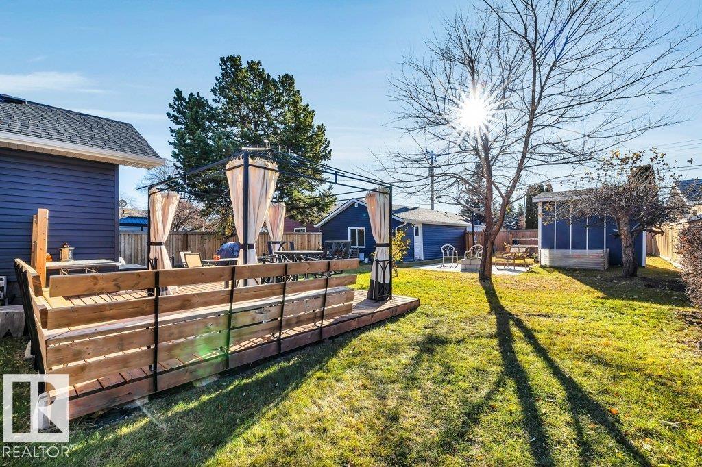 This little gem packs a huge punch! Located in the heart of Devon sits this gigantic 877sqm lot. Stroll over to the park, pool, arena or downtown shops. It’s all walkable from this address. Are you looking to downsize but still love having outdoor space, a first-time buyer, single or young couples? This home has been SUBSTANTIALLY RENOVATED inside & out from top to bottom; you will live worry-free. Double detached garage, large shed, newer fence, beautiful landscaping with deck & stone fireplace area plus room to spare for a garden, pets or kids to play. Exterior siding, windows, shingles all redone. Inside is a true transformation with a spacious kitchen & dining area for this size of a home. Nice size primary suite + 2nd bedroom which is being used as main floor laundry currently. Keep the same layout or make this 2nd bedroom a nursery, office, or bedroom. Two stunning bathrooms located on each floor for your convenience. The basement provides usable rec room, storage and more bedrooms. One of a kind. (id:21083)