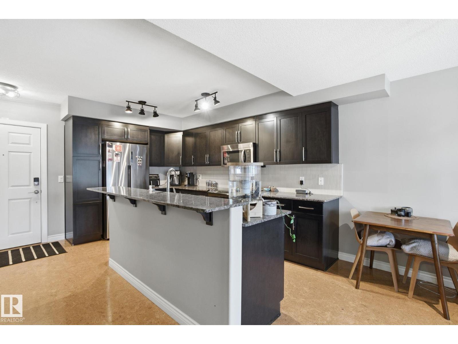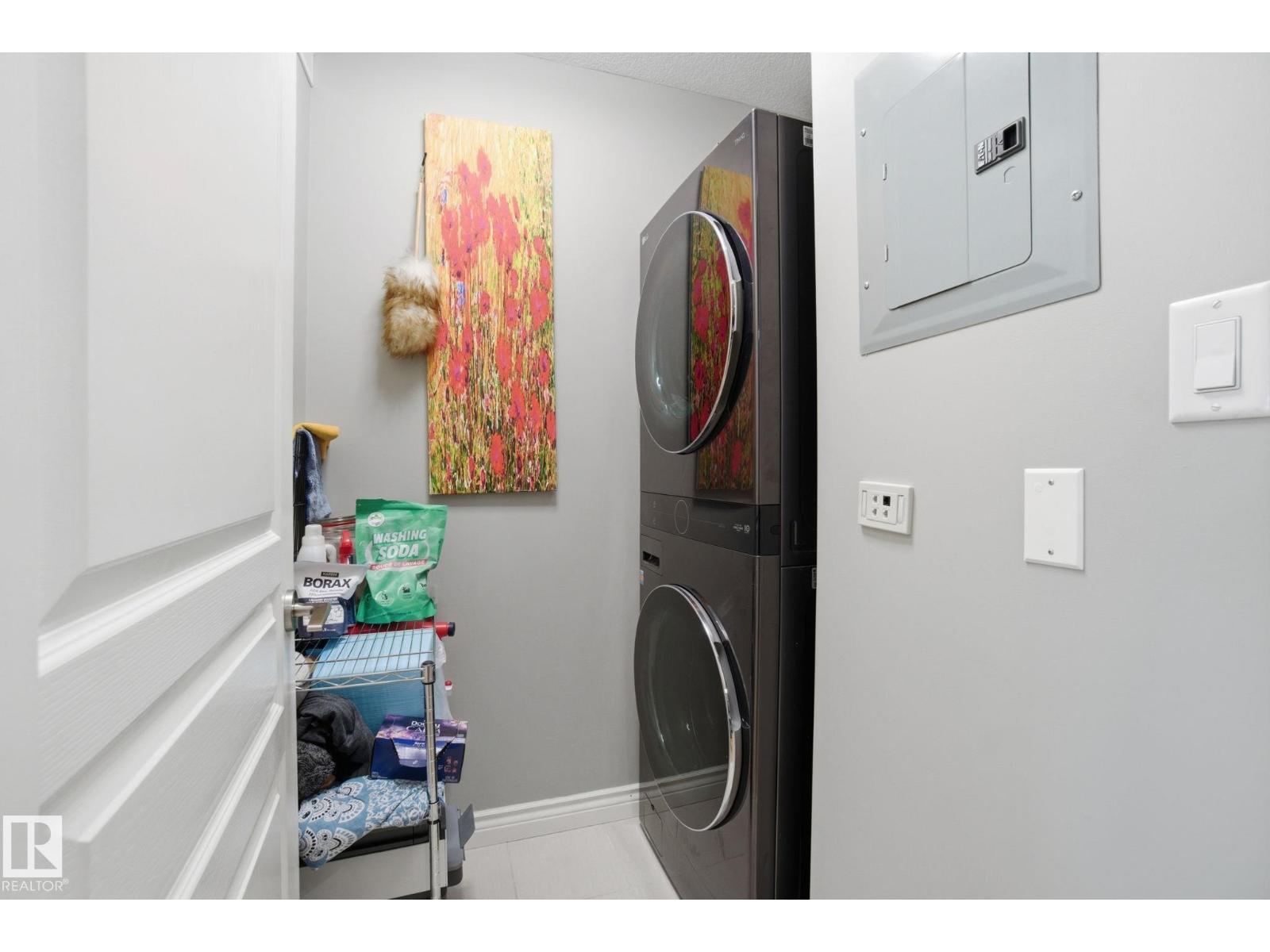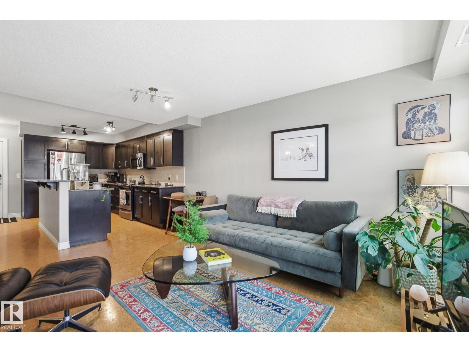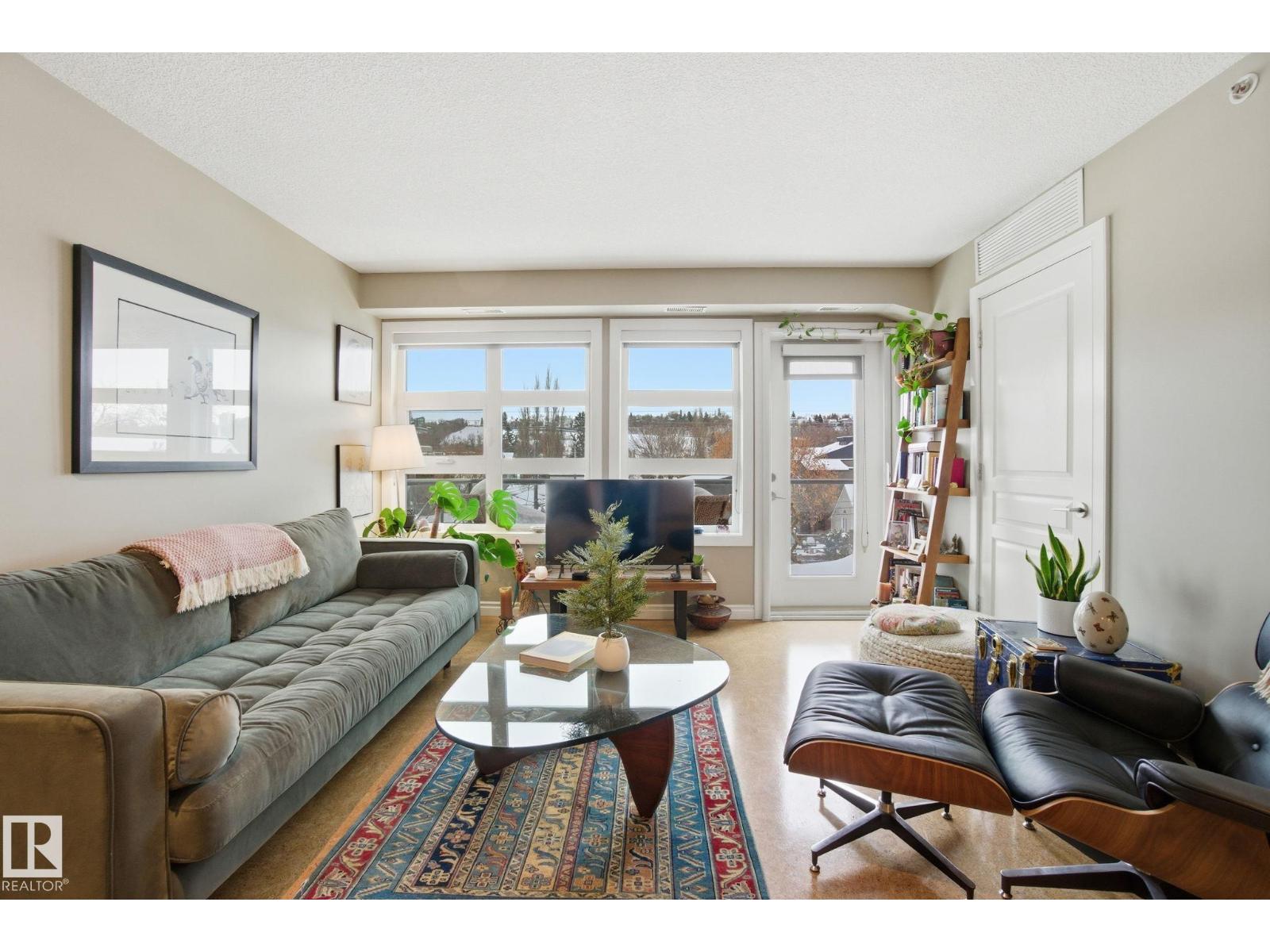 Perched on the top floor with a desirable corner unit, this refined 2 bed, 2 bath residence in Waterside Estates delivers a balance of urban convenience and natural surroundings. Sunlight pours through the south facing windows, enhancing the open-concept layout while offering a polished feel throughout. The spacious primary bedroom is thoughtfully designed to accommodate a king-sized bed and seating area, complete with a 6-pc ensuite featuring double sinks, generous counter space, and a walk-in closet. A second bedroom and full bath provide flexibility for guests, a home office, or shared living. New cork flooring adds warmth and continuity across the unit, while in-suite laundry, private balcony, and access to a car wash bay elevate everyday comfort. Extensive building upgrades including new windows, balconies, and energy-efficient exterior. Steps from River Valley trails, the LRT, Muttart and minutes to downtown, this is effortless city living with unmatched access to nature, culture, and connectivity. (id:21083)