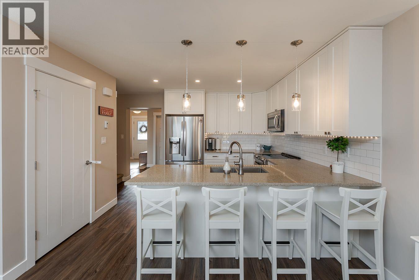 Welcome to this stylish end unit townhome. This 3 bdrm, 3.5-bthrm home showcases a bright open-concept layout anchored by a modern kitchen with stainless steel appliances and quartz counters. The living and dining areas with vinyl plank are flooded with natural light & open onto a great backyard deck, perfect for morning coffee or relaxed summer evenings . Upstairs, enjoy a generous primary bedroom with a 3pc ensuite & walk-in closet, along with two additional bedrooms, a 4pc bathroom, dedicated laundry area, & a built-in computer/study nook ideal for remote work or homework. The main floor includes a handy 2pc powder room for guests. The attached 14x23 garage offers ample storage & room for parking. Finished walkout basement w/bathroom, live close to parks, trails, schools, & amenities. (id:21083)