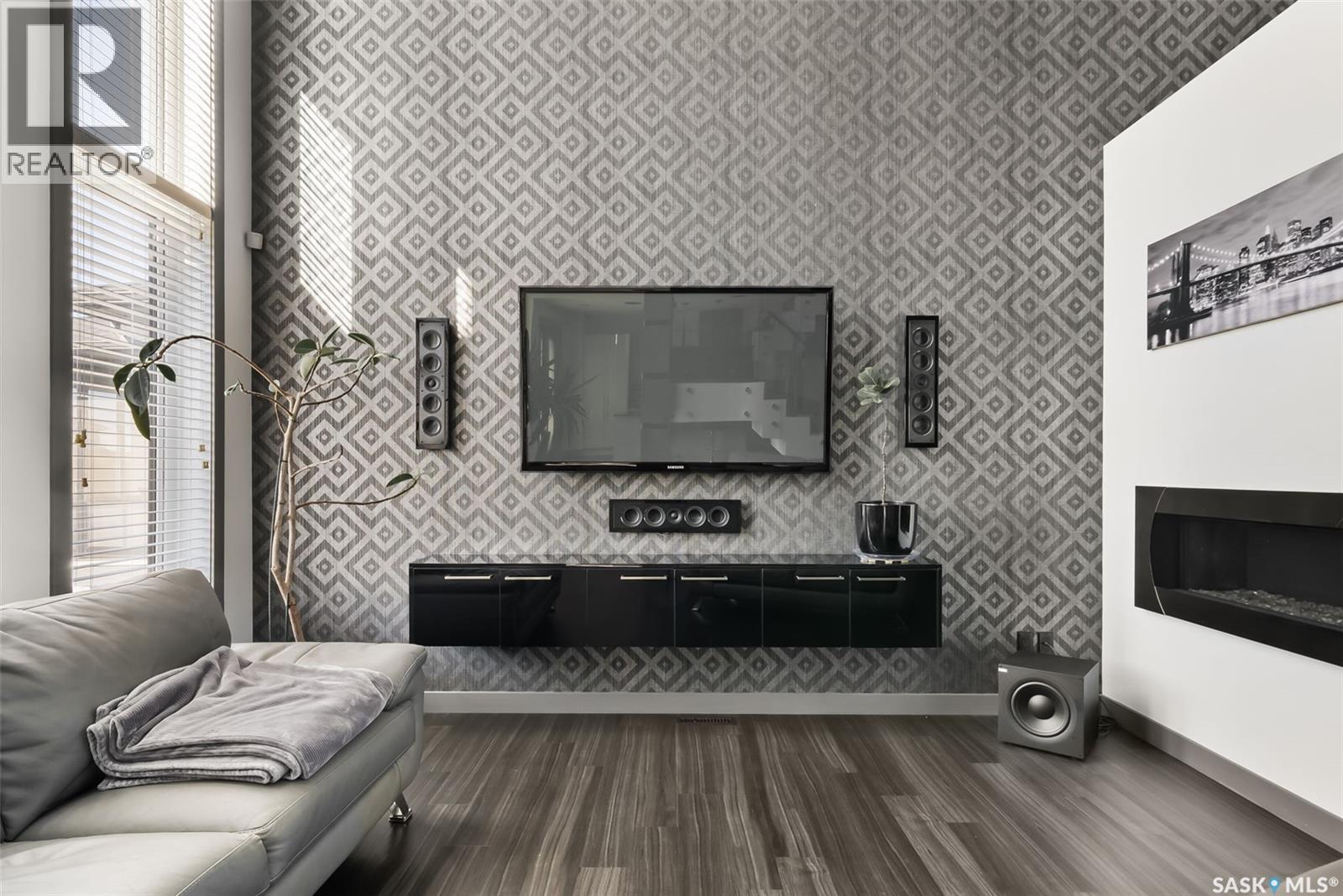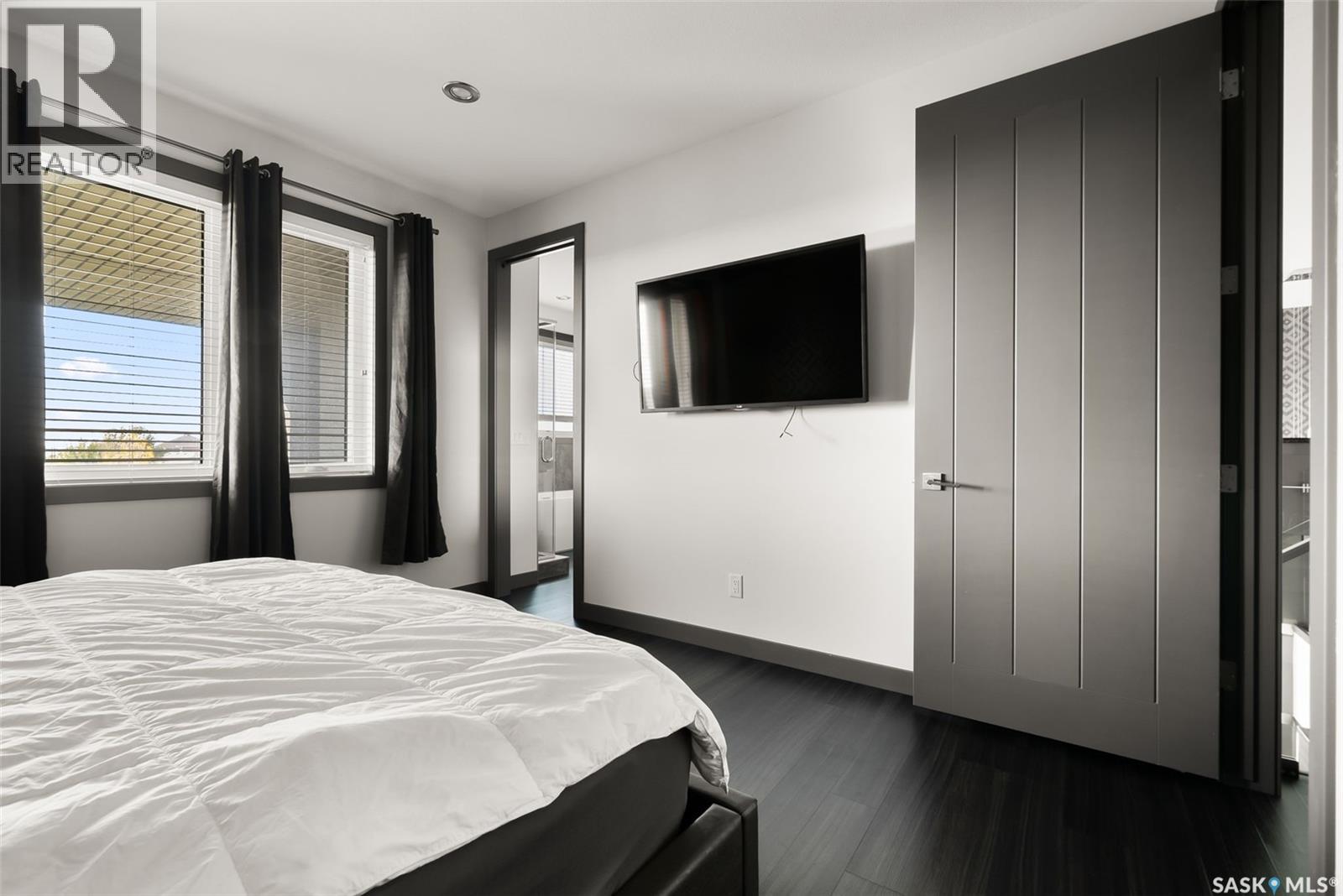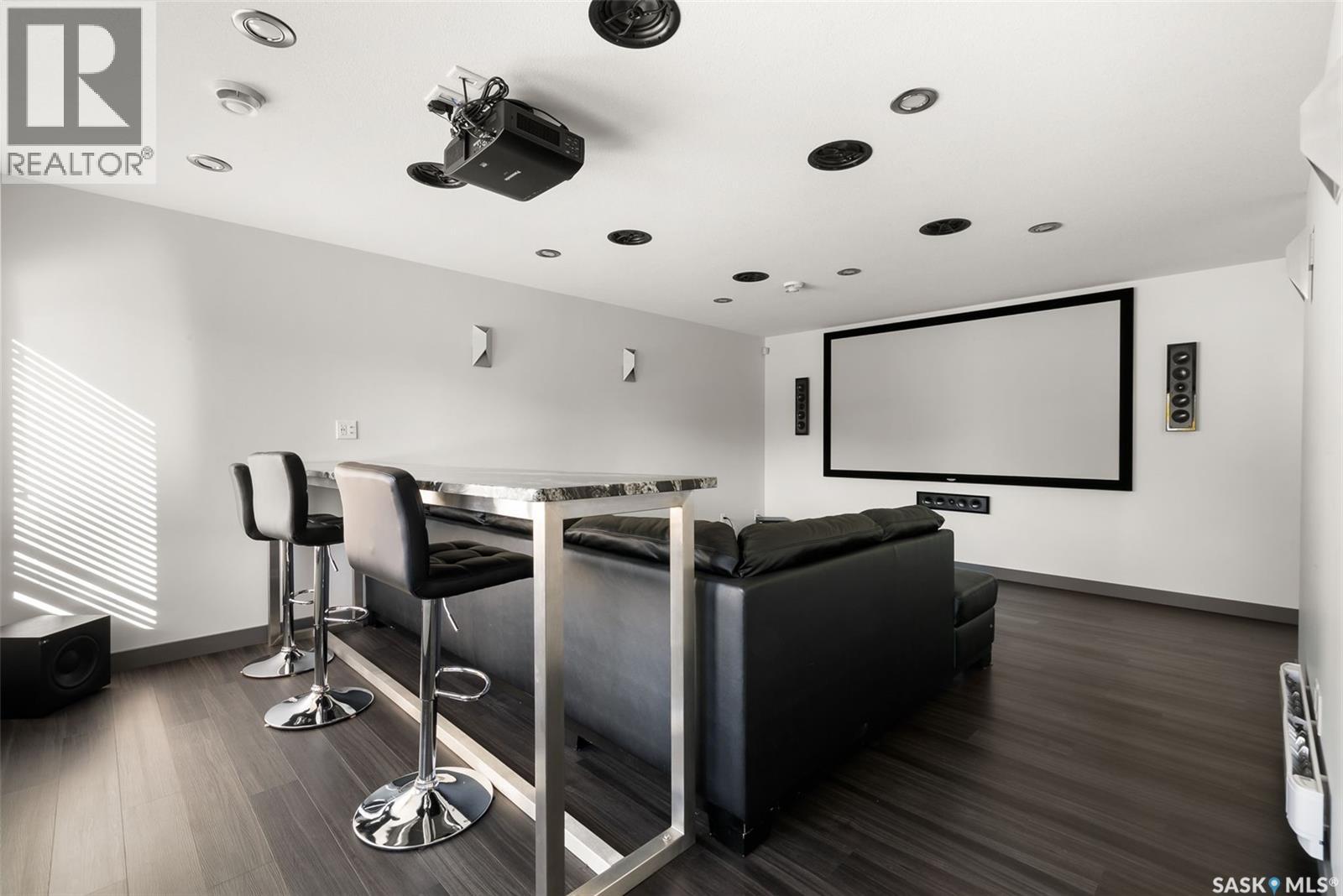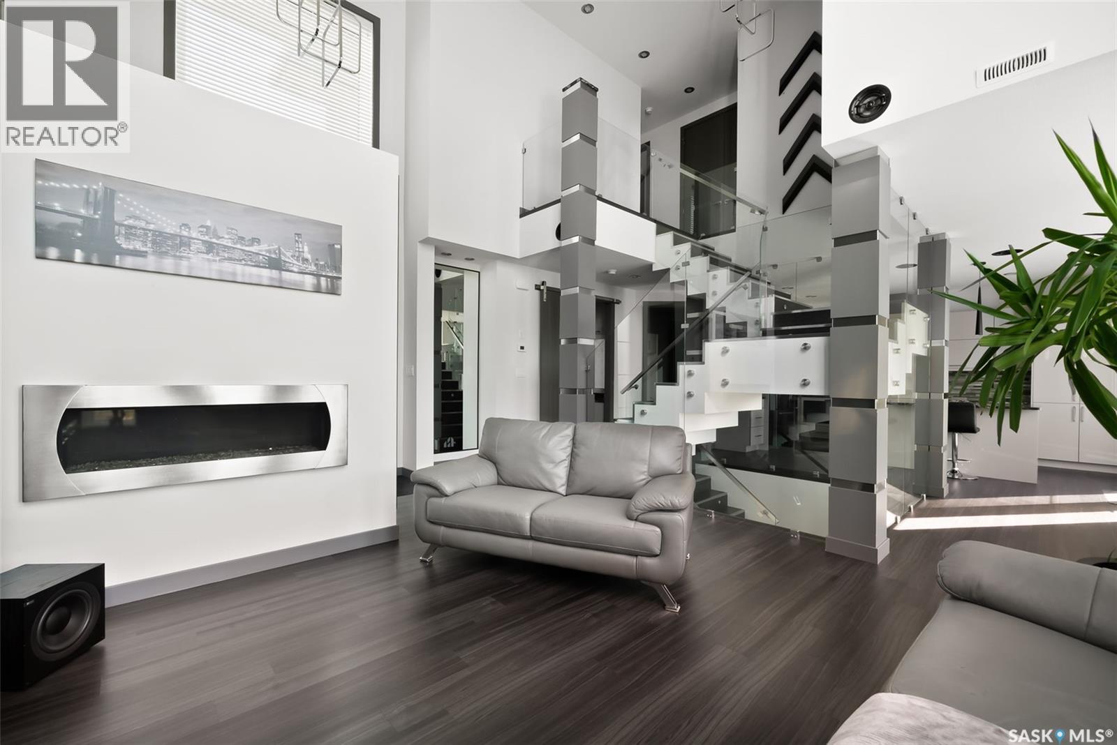Welcome to this stunning custom-built walkout in Fairways West! This home is in a prime location and backs the beautiful walking path leading to the Goulet Golf Course. The moment you step inside, 19-foot ceilings and floor-to-ceiling windows create a dramatic sense of space and light. A striking glass-and-stainless steel staircase, accented with subtle stair lighting, introduces the home’s modern, refined style. The kitchen is both beautiful and practical, featuring custom white cabinetry, a generous sit-up island, granite countertops and premium stainless-steel appliances. There is garden door access from the kitchen which opens onto a private west-facing deck—ideal for morning coffee or evening entertaining while taking in the peaceful green space. Upstairs you’ll find the primary retreat, complete with a walk-in closet and a luxurious five-piece ensuite featuring dual vanities, a stand-alone soaker tub and a custom-tiled shower. Two additional bedrooms, a four-piece bath, and a convenient laundry room complete this level. The fully developed walkout basement is built for entertaining or unwinding after a long day. The rec room is set up as a perfect home theatre complete with a projector screen and built-in sound system! A sleek wet bar adds style and convenience, while the fourth bedroom doubles as a guest room, office, or home gym. Expansive windows keep the space bright and welcoming. The oversized double attached garage is a standout—heated, drywalled and equipped with 12-foot ceilings, a floor drain, and water taps. There are built-in speakers throughout the house and receivers are all included. Every detail in this home combines contemporary design with practical luxury. Discover a residence where craftsmanship and lifestyle meet in one exceptional property. This Fairways West show piece is one you do not want to miss out on! (id:21083)