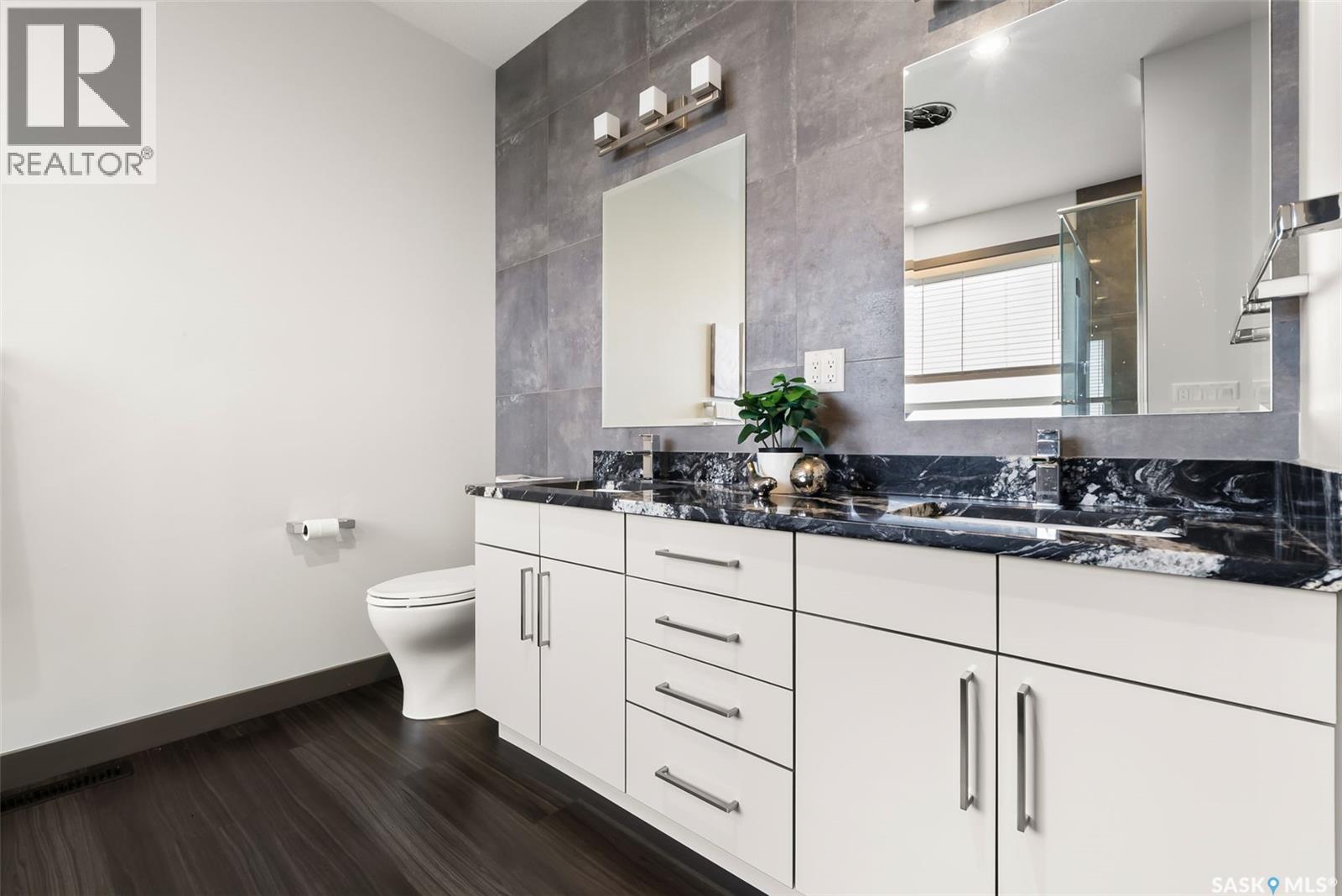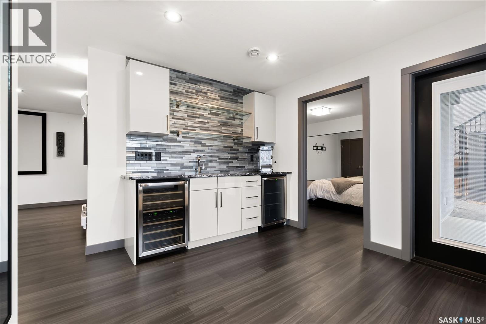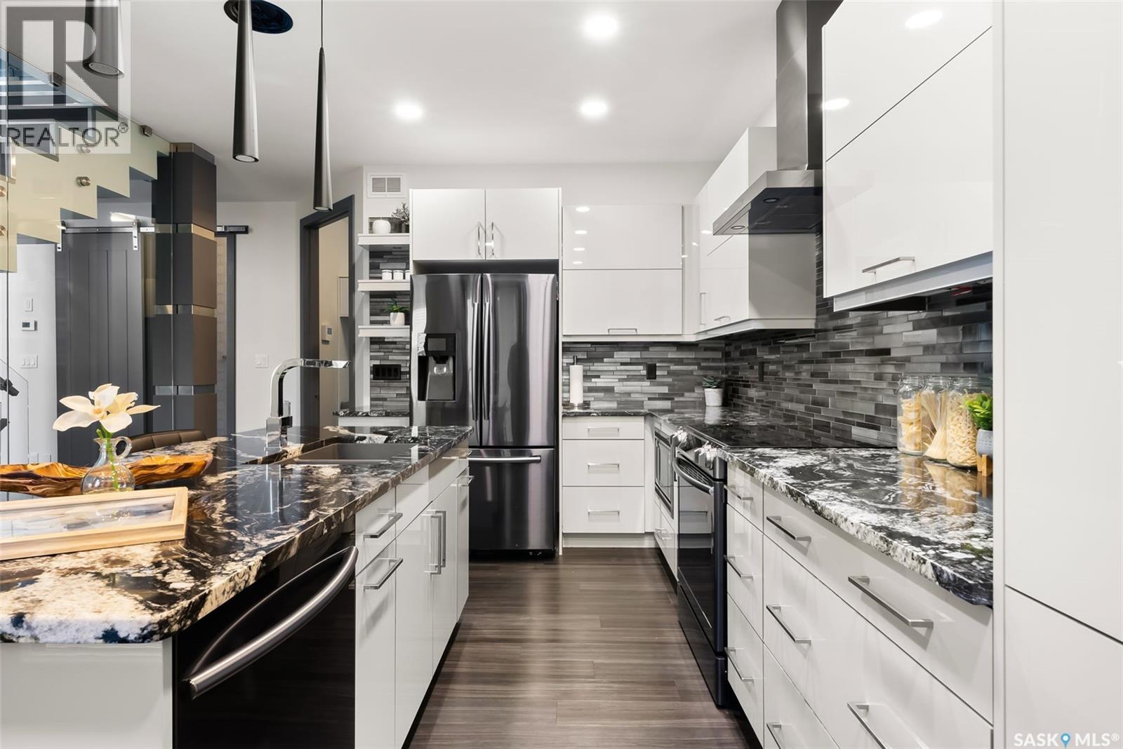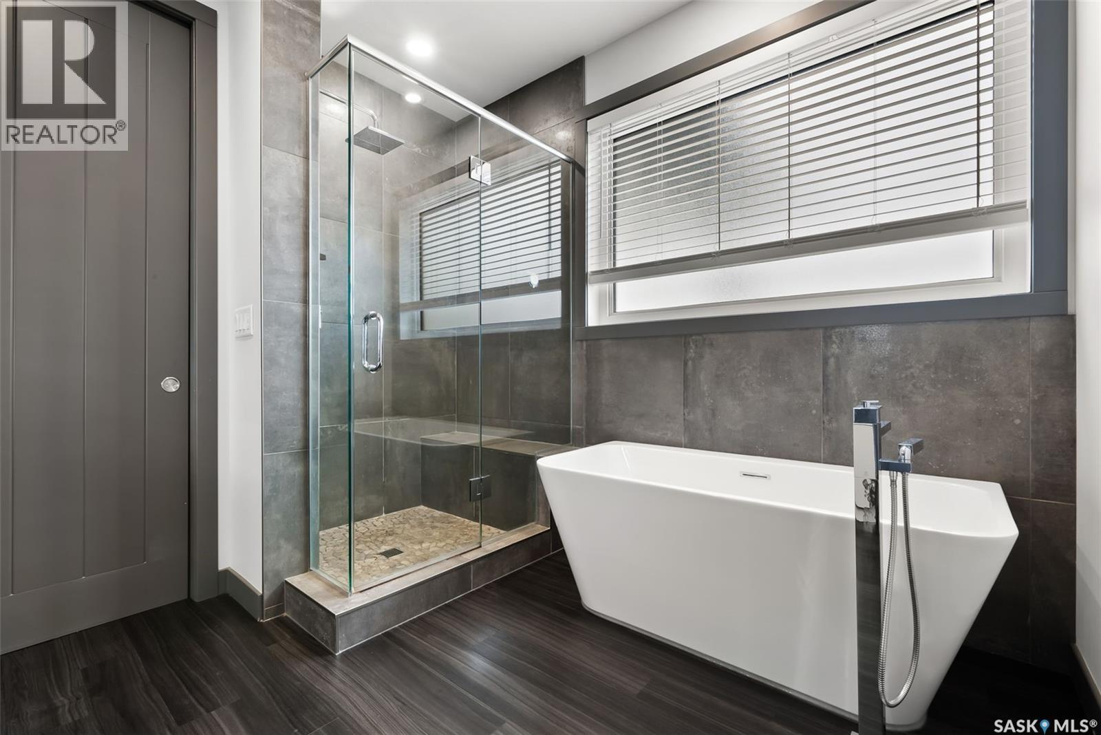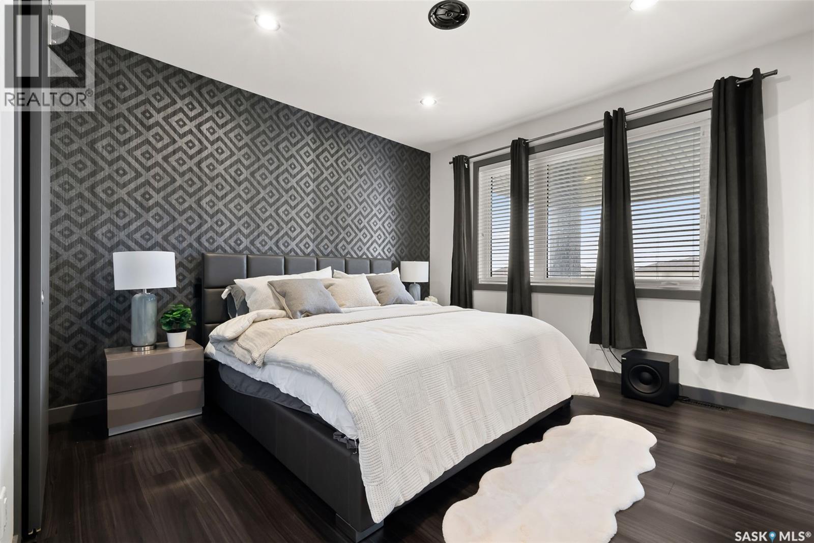 Welcome to this stunning custom-built walkout in Fairways West! This home is in a prime location and backs the beautiful walking path leading to the Goulet Golf Course. The moment you step inside, 19-foot ceilings and floor-to-ceiling windows create a dramatic sense of space and light. A striking glass-and-stainless steel staircase, accented with subtle stair lighting, introduces the home’s modern, refined style. The kitchen is both beautiful and practical, featuring custom white cabinetry, a generous sit-up island, granite countertops and premium stainless-steel appliances. There is garden door access from the kitchen which opens onto a private west-facing deck—ideal for morning coffee or evening entertaining while taking in the peaceful green space. Upstairs you’ll find the primary retreat, complete with a walk-in closet and a luxurious five-piece ensuite featuring dual vanities, a stand-alone soaker tub and a custom-tiled shower. Two additional bedrooms, a four-piece bath, and a convenient laundry room complete this level. The fully developed walkout basement is built for entertaining or unwinding after a long day. The rec room is set up as a perfect home theatre complete with a projector screen and built-in sound system! A sleek wet bar adds style and convenience, while the fourth bedroom doubles as a guest room, office, or home gym. Expansive windows keep the space bright and welcoming. The oversized double attached garage is a standout—heated, drywalled and equipped with 12-foot ceilings, a floor drain, and water taps. There are built-in speakers throughout the house and receivers are all included. Every detail in this home combines contemporary design with practical luxury. Discover a residence where craftsmanship and lifestyle meet in one exceptional property. This Fairways West show piece is one you do not want to miss out on! (id:21083)