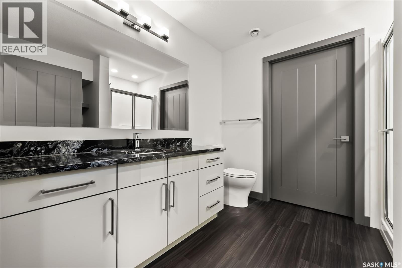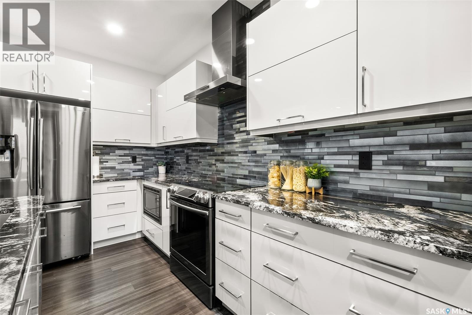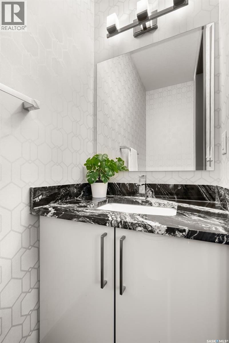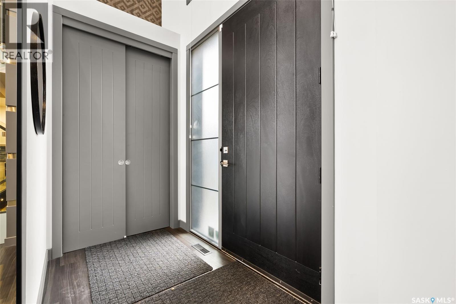 Welcome to this stunning custom-built walkout in Fairways West! This home is in a prime location and backs the beautiful walking path leading to the Goulet Golf Course. The moment you step inside, 19-foot ceilings and floor-to-ceiling windows create a dramatic sense of space and light. A striking glass-and-stainless steel staircase, accented with subtle stair lighting, introduces the home’s modern, refined style. The kitchen is both beautiful and practical, featuring custom white cabinetry, a generous sit-up island, granite countertops and premium stainless-steel appliances. There is garden door access from the kitchen which opens onto a private west-facing deck—ideal for morning coffee or evening entertaining while taking in the peaceful green space. Upstairs you’ll find the primary retreat, complete with a walk-in closet and a luxurious five-piece ensuite featuring dual vanities, a stand-alone soaker tub and a custom-tiled shower. Two additional bedrooms, a four-piece bath, and a convenient laundry room complete this level. The fully developed walkout basement is built for entertaining or unwinding after a long day. The rec room is set up as a perfect home theatre complete with a projector screen and built-in sound system! A sleek wet bar adds style and convenience, while the fourth bedroom doubles as a guest room, office, or home gym. Expansive windows keep the space bright and welcoming. The oversized double attached garage is a standout—heated, drywalled and equipped with 12-foot ceilings, a floor drain, and water taps. There are built-in speakers throughout the house and receivers are all included. Every detail in this home combines contemporary design with practical luxury. Discover a residence where craftsmanship and lifestyle meet in one exceptional property. This Fairways West show piece is one you do not want to miss out on! (id:21083)